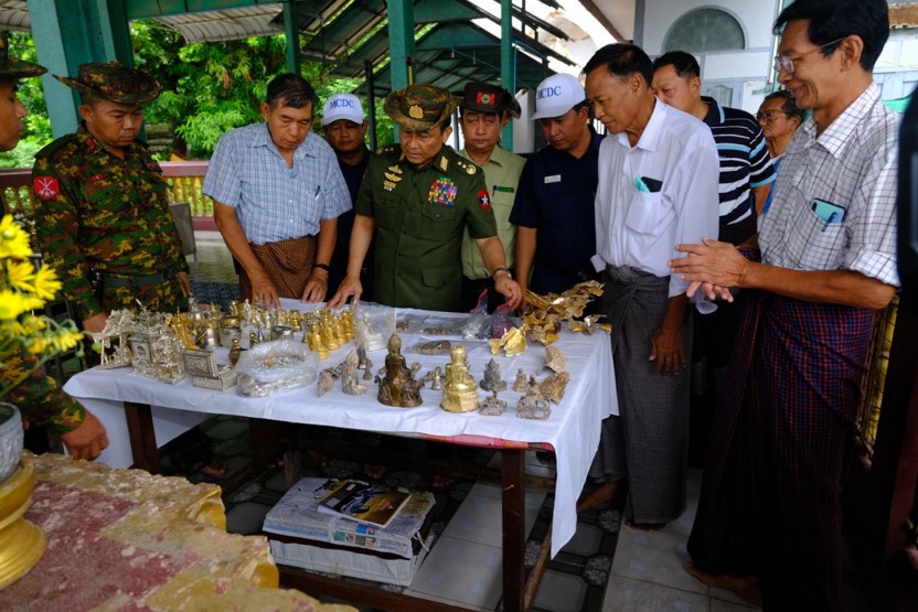 အလားတူ ကာကွယ်ရေးဦးစီးချုပ်ရုံး (ကြည်း) မှ ဒုတိယဗိုလ်ချုပ်ကြီး စိုးတင့်နိုင်နှင့် တာဝန်ရှိသူများသည် မန္တလေးမြို့၊ အောင်မြေသာစံမြို့နယ်၊ အောင်မြေသာစံရပ်ကွက်၊ မဟာဒီပဲရင်းကျောင်းတိုက်များသို့လည်းကောင်း၊ ချမ်းမြသာစည်မြို့နယ် တမ္ပဝတီရပ်ကွက်ရှိ ရှင်လွန်းမယ်ဘုရားသို့လည်းကောင်း၊ အမရပူရမြို့နယ်၊ မှန်တန်းရပ်ရှိ မဟာဝိဇယရံသီပုထိုးတော်ကြီး မြတ်စွာဘုရားသို့လည်းကောင်း၊ ဆင်စွယ်ပွတ်ကျေးရွာရှိ သတ္တဌာနဘုရားနှင့် တောင်သမန်းကျေးရွာရှိ မဟာသကျရံသီကျောက်တော်ကြီး မြတ်စွာဘုရားများသို့လည်းကောင်း သွားရောက်၍ ငလျင်ဒဏ်ကြောင့် ပြိုကျပျက်စီးသွားသော အပျက်အစီးများအား တပ်မတော်သားစစ်သည်များမှ ဖယ်ရှားရှင်းလင်းနေမှုအခြေအနေများအားလည်းကောင်း၊ စက်ယန္တရားကြီးများ အသုံးပြု၍ ရှင်းလင်းဆောင်ရွက်နေမှု အခြေအနေများအားလည်းကောင်း၊ အပျက်အစီးများ ရှင်းလင်းဆောင်ရွက်ရာတွင် ထပ်မံသိမ်းဆည်းရရှိသော ဌာပနာပစ္စည်းများအား စနစ်တကျသိမ်းဆည်ထားရန်တို့ကိုလည်းကောင်း၊ သွားရောက်ကြည့်ရှုအားပေးပြီး တာဝန်ရှိသူများ၏ တင်ပြချက်များအပေါ် လိုအပ်သည်များ ပေါင်းစပ်ညှိနှိုင်းဆောင်ရွက်ပေးသည်။