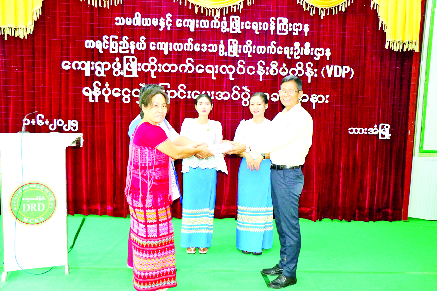ဆက်လက်၍ ဒုတိယဝန်ကြီးသည် ကရင်ပြည်နယ် ကျေးလက်ဒေသဖွံ့ဖြိုးတိုးတက်ရေးဦးစီးဌာနရုံးသို့ သွားရောက်၍ ကျေးရွာဖွံ့ဖြိုးတိုးတက်ရေးစီမံကိန်း VDP ရန်ပုံငွေ လွှဲပြောင်းပေးအပ်ပွဲအခမ်းအနားသို့ တက်ရောက်၍ သမဝါယမနှင့်ကျေးလက်ဖွံ့ဖြိုးရေးဝန်ကြီးဌာနက ဆောင်ရွက်ပေးနေသည့် ဒေသဖွံ့ဖြိုးရေးလုပ်ငန်းများကို ရှင်းလင်းပြောကြားပြီး ဒုတိယဝန်ကြီးက ဘားအံမြို့နယ်အတွင်းရှိ ကျေးရွာသုံးရွာအတွက် စီမံကိန်းရန်ပုံငွေကျပ် သိန်း ၁၅၀ စီကိုလည်းကောင်း၊ ပြည်နယ်လမ်းပန်းဆက်သွယ်ရေးဝန်ကြီးက လှိုင်းဘွဲ့မြို့နယ်အတွင်း ရှိကျေးရွာနှစ်ရွာအတွက် စီမံကိန်းရန်ပုံငွေကျပ် သိန်း ၁၅၀ စီကိုလည်းကောင်း၊ ဒုတိယညွှန်ကြားရေးမှူးချုပ်က သံတောင်ကြီးမြို့နယ်အတွင်းမှ ကျေးရွာတစ်ရွာအတွက် စီမံကိန်းရန်ပုံငွေကျပ် သိန်း ၁၅၀ စီကိုလည်းကောင်း ပေးအပ်သည်။