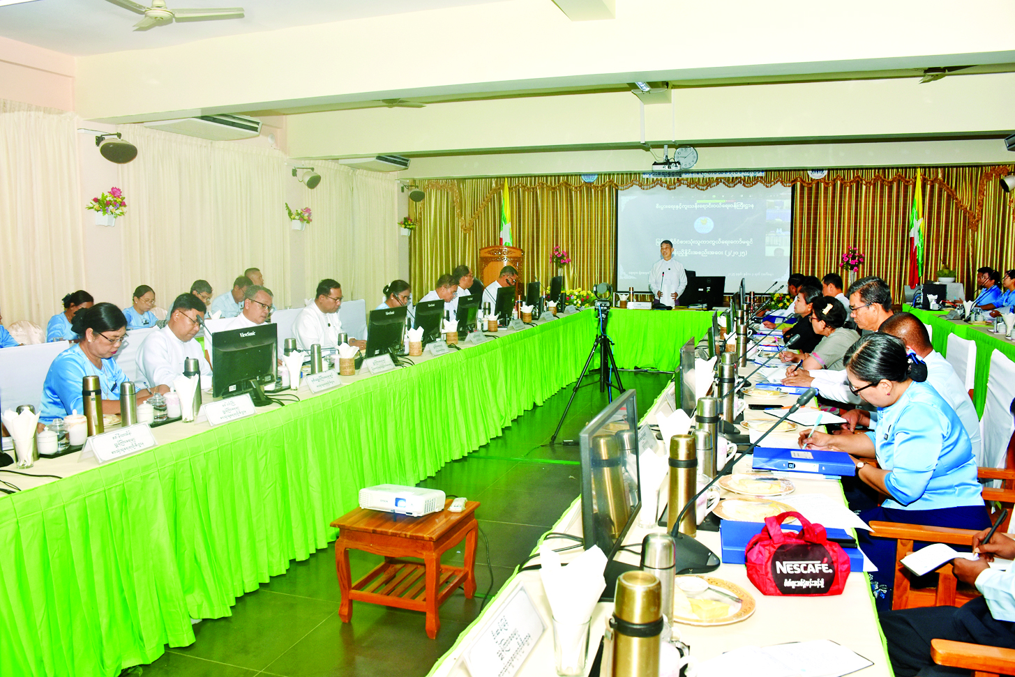 ဆက်လက်၍ ယခင်လုပ်ငန်းညှိနှိုင်းအစည်းအဝေးဆုံးဖြတ်ချက်များအပေါ် ဆောင်ရွက်ပြီးစီးမှုအခြေအနေများ၊ ကော်မရှင်က အဆုံးအဖြတ်ပေးရမည့် လုပ်ငန်းဆောင်ရွက်ချက်များနှင့်စပ်လျဉ်း၍ ကော်မရှင်အတွင်းရေးမှူး စားသုံးသူရေးရာဦးစီးဌာန ညွှန်ကြားရေးမှူးချုပ် ဦးခင်မောင်လှိုင်က ရှင်းလင်းတင်ပြရာ တင်ပြချက်များနှင့်စပ်လျဉ်း၍ ကော်မရှင်ဥက္ကဋ္ဌနှင့် အဖွဲ့ဝင်များက ဆွေးနွေး၍ ဆုံးဖြတ်ချက်များ ချမှတ်သည်။