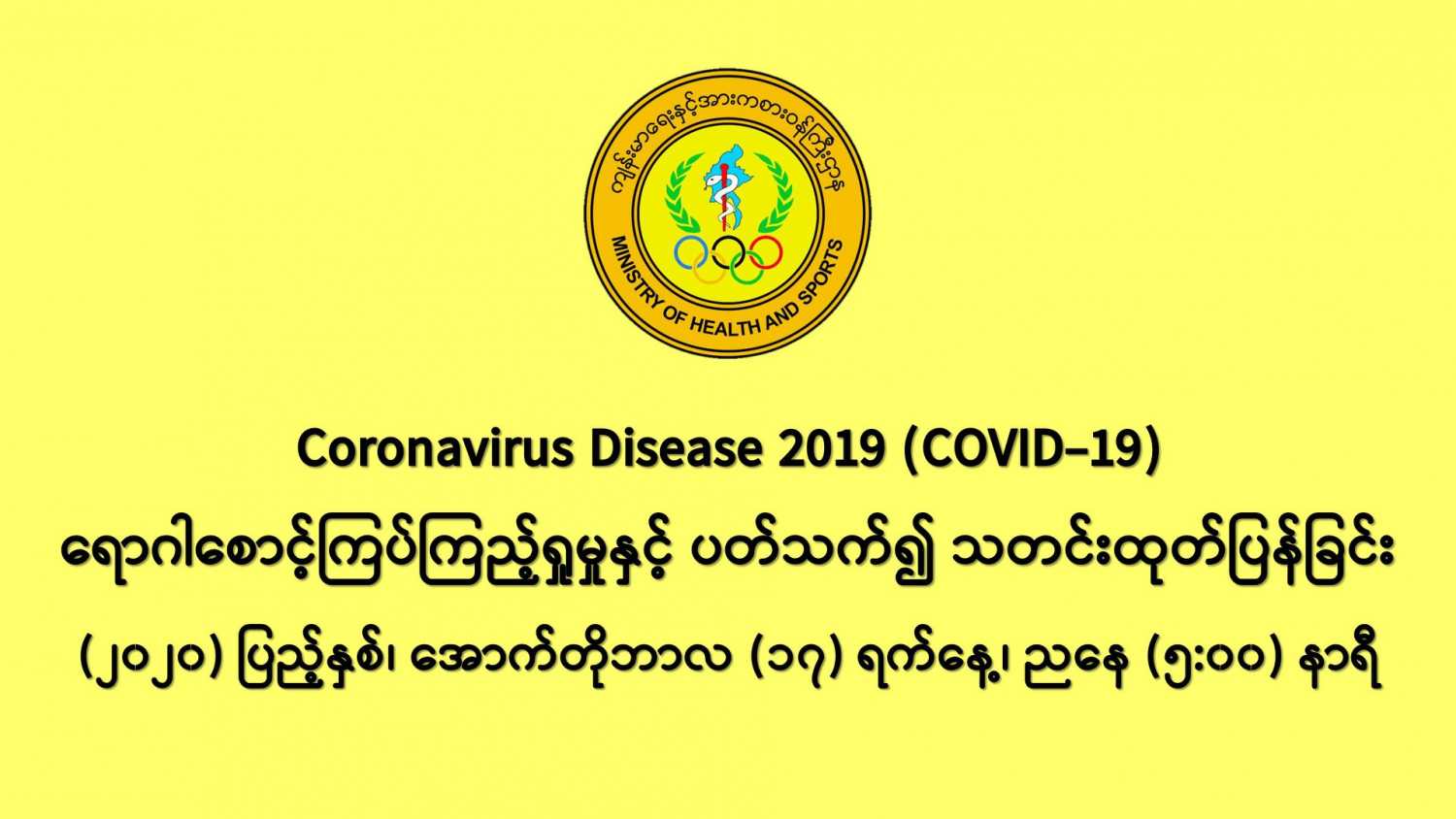 COVID-19 ရောဂါစောင့်ကြပ်ကြည့်ရှုမှုနှင့်ပတ်သက်၍ သတင်းထုတ်ပြန်ခြင်း 10/17/2020 (၁၇-၁၀-၂၀၂၀) ရက်နေ့၊ ညနေ (၅:၀၀)နာရီ (၁၆-၁၀-၂၀၂၀) ရက်နေ့ဓာတ်ခွဲစစ်ဆေးမှုများတွင်တွေ့ရှိခဲ့သော ဓာတ်ခွဲအတည်ပြုလူနာ (၁,၁၃၈) ဦး၏ မြို့နယ်အလိုက် တွေ့ရှိရမှုအခြေအနေမှာ အောက်ပါအတိုင်း ဖြစ်ပါသည်။ #Ministry of Health and Sports, Myanmar
