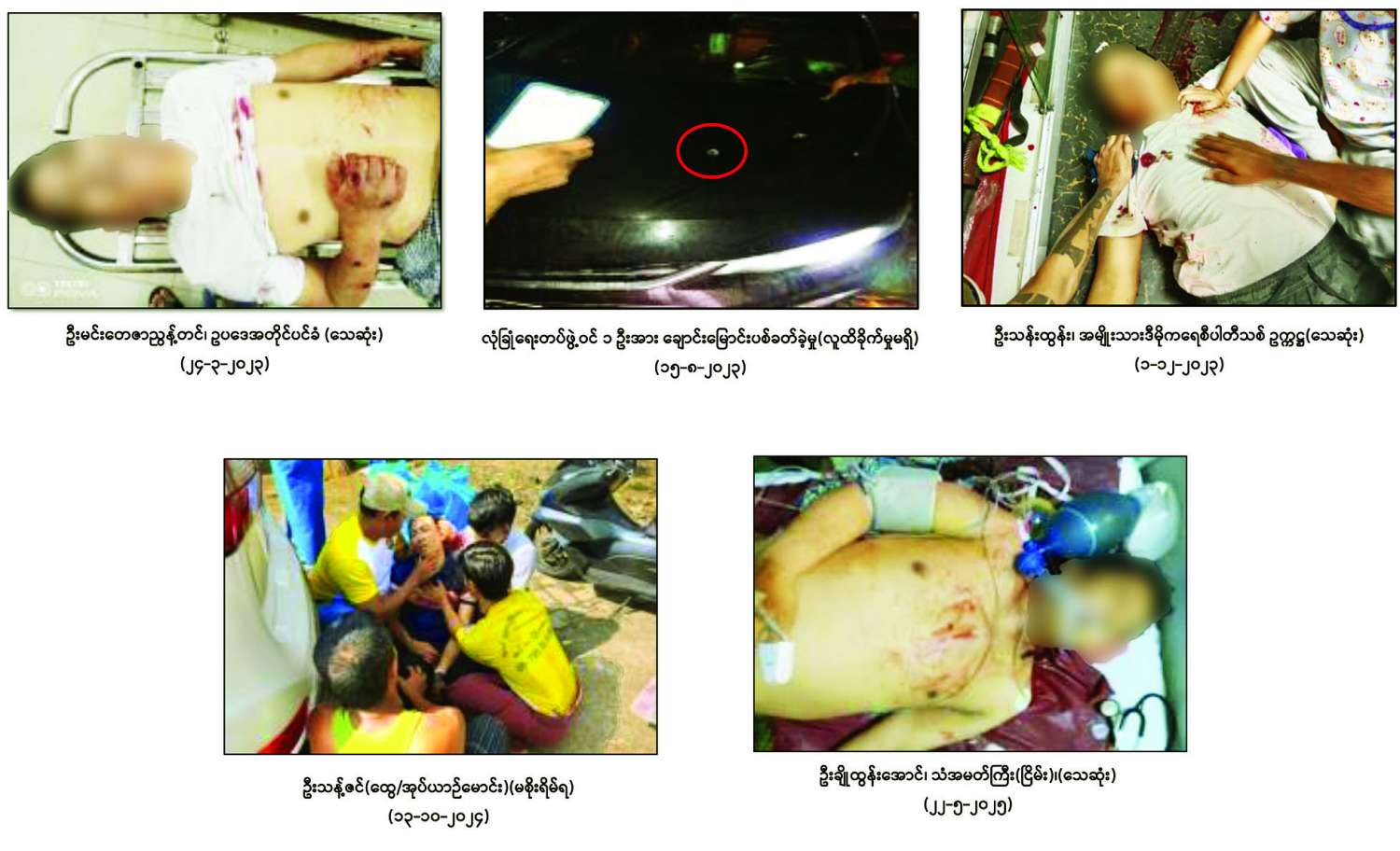 ( ခ ) ၂၀၂၃ ခုနှစ် ဩဂုတ် ၁၆ ရက်တွင် မျိုးကိုကို(ခ) စိုင်းကိုကို(ခ) ဇင်မင်းထက် (ခ) လင်းလက်ဇော်နှင့် ချစ်ကိုကို(ခ)ကျော်ကြီးတို့သည် ရွှေပြည်သာမြို့နယ် အမှတ်(၃)ရပ်ကွက် ပန်းခြံ(၄)လမ်း၌ လုံခြုံရေးတပ်ဖွဲ့ဝင်တစ်ဦးအား ပစ္စတိုဖြင့် ချောင်းမြောင်းပစ်ခတ်ခဲ့ပြီး ဟန်လင်းအောင်မှ အခြေအနေစောင့်ကြည့်ပေးခဲ့ကြောင်း။