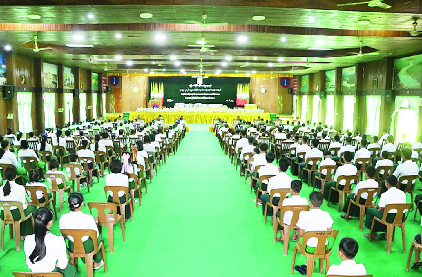 ၂၀၂၅-၂၀၂၆ ပညာသင်နှစ်တွင် တက်ရောက်ပညာသင်ကြားကြမည့် မြောက် ပိုင်းတိုင်းစစ်ဌာနချုပ်မှ တပ်မတော်သားမိသားစုဝင် ကျောင်းသား ကျောင်းသူများနှင့် အောင်စိုးမိုး (၁) စစ်မှုထမ်းဟောင်းအိမ်ရာရှိ ကျောင်းသား ကျောင်းသူများအတွက် (ပထမအကြိမ်) ကျောင်းဝတ်စုံနှင့် စာရေးကိရိယာများ ပေးအပ်ပွဲကို ယနေ့နံနက်ပိုင်းတွင် တိုင်းစစ်ဌာနချုပ် ဗလမင်းထင်ခန်းမ၌ ပြုလုပ်ရာ တိုင်းမှူး ဗိုလ်ချုပ်အောင်ဇော်ထွေးနှင့် အဖွဲ့ဝင်များ၊ စစ်မှုထမ်းဟောင်းအဖွဲ့ဝင်များ၊ အရာရှိ၊ စစ်သည်၊ မိသားစုဝင်များ၊ ဆရာ ဆရာမများ၊ ကျောင်းသားမိဘများနှင့် ကျောင်းသား ကျောင်းသူများ တက်ရောက်ကြသည်။