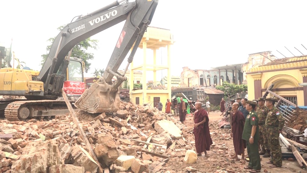 ထို့အတူ ကာကွယ်ရေးဦးစီးချုပ်ရုံး(ကြည်း)မှ ဒုတိယဗိုလ်ချုပ်ကြီး စိုးတင့်နိုင်နှင့် တာဝန်ရှိသူများသည် မန္တလေးမြို့၊ အမရပူရမြို့နယ်၊ တောင်သမန်ကျေးရွာရှိ မဟာသကျရံသီ ကျောက်တော်ကြီး မြတ်စွာဘုရားများသို့ သွားရောက်၍ ငလျင်ဒဏ်ကြောင့် ပြိုကျပျက်စီးခဲ့သော စိန်ဖူးတော်များနှင့် ဋ္ဌာပနာပစ္စည်းများအား သိမ်းဆည်းထားရှိမှု အခြေအနေများအား ကြည့်ရှုစစ်ဆေး၍ အပျက်အစီးများ စတင်ရှင်းလင်းဆောင်ရွက်နေမှု အခြေအနေများအားလည်းကောင်း၊ ဘုရားပရိဝုဏ်အတွင်း ပြန်လည်ပြုပြင်တည်ဆောက်ရေးလုပ်ငန်းများဆောင်ရွက်နေမှု အခြေအနေများအားလည်းကောင်း၊ မှန်တန်းရပ်ရှိ မဏိဇောတဓမ္မရိပ်သာကျောင်းတိုက်သို့ ရောက်ရှိပြီး ငလျင်ဒဏ်ကြောင့် ထိခိုက်ပျက်စီးခဲ့သော သာသနိကအဆောက်အအုံအပျက်အစီးများအား စက်ယန္တရားများအသုံးပြု၍ အင်တိုက်အားတိုက် ဖယ်ရှားရှင်းလင်းနေမှုအခြေအနေများအား ကြည့်ရှုစစ်ဆေးပြီး ကျောင်းထိုင်ဆရာတော်ကြီးအား သွားရောက်ဖူးမြော်ကြည်ညို၍ တာဝန်ရှိသူများ၏ တင်ပြချက်များအပေါ် လိုအပ်သည်များ ပေါင်းစပ်ညှိနှိုင်းဆောင်ရွက်ပေးသည်။