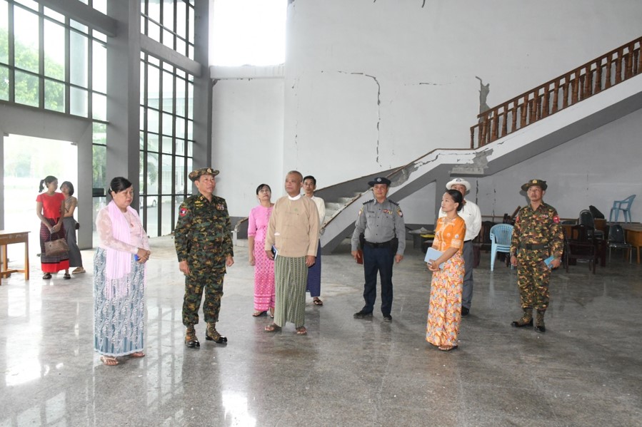 ဆက်လက်ပြီး ကျောက်ဆည်မြို့၊ မြင်စိုင်းမြို့ဟောင်းမြို့ကွက်(ဂ)အတွင်းရှိ နန်းဦးဘုရားပြန်လည်ပြုပြင်မွမ်းမံရန်အတွက် ငြမ်းဆင်နေမှုအခြေအနေများ၊ ပတ္တာကျေးရွာအုပ်စုရှိ ရွာဦးဘုန်းကြီးကျောင်းတွင် ငလျင်ဒဏ်ကြောင့် ထိခိုက်ပျက်စီးမှုအခြေအနေများ၊ အမှတ်(၆)အခြေခံပညာမူလတန်းကျောင်း၌ G-1 နှင့် G-2 ကျောင်းသား၊ ကျောင်းသူများအား ROTARY CLUB အဖွဲ့မှ စာရေးကိရိယာများ ပေးအပ်နေမှုအခြေအနေအားလည်းကောင်း၊ ကျောက်ဆည်မြို့နယ်အတွင်းရှိ ငလျင်ဘေးဒဏ်ကြောင့် ပျက်စီးသွားသောဘုရားစေတီများ၊ သာသနိကအဆောက်အဦများနှင့် လူနေအဆောက်အအုံများ ပြန်လည်ပြုပြင်တည်ဆောက်ရေးအတွက် လိုအပ်လျက်ရှိသော ဘိလပ်မြေ၊ သံချောင်းနှင့် အထပ်သားပြားများအား စက်ရုံထုတ်အထူးဈေးနှုန်းဖြင့် ရောင်းချပေးနေမှုအခြေအနေများအား သွားရောက်ကြည့်ရှုခဲ့ပြီး ဒေသခံပြည်သူများ၏ တင်ပြချက်များအား တာဝန်ရှိသူများနှင့် ပေါင်းစပ်ညှိနှိုင်းဆောင်ရွက်ပေးခဲ့ကြောင်း သတင်းရရှိသည်။