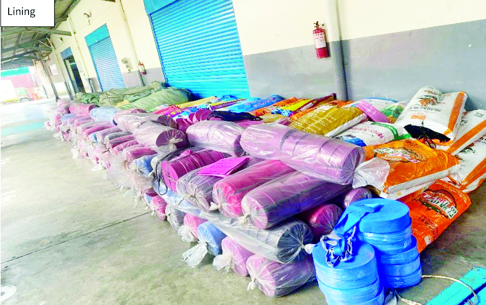 တရားမဝင်သစ်မျိုးစုံ၊ လုပ်ငန်းသုံးပစ္စည်းများ၊ လူသုံးကုန်ပစ္စည်းများ၊ စားသောက်ကုန်ပစ္စည်းများ၊ လိုင်စင်မဲ့ယာဉ်များ၊ လိုင်စင်မဲ့ဆိုင်ကယ်များ၊ တရားမဝင်ကုန်ပစ္စည်းတင်ရေယာဉ်နှင့်ယာဉ်များ သိမ်းဆည်းရမိ