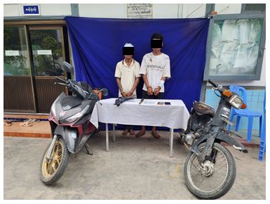 မန္တလေးတိုင်းဒေသကြီး၊ မဟာအောင်မြေမြို့နယ်၌ သေနတ်အတုဖြင့်ခြိမ်းခြောက်ကာ လုယက်မှုကျူးလွန်သူများအား သက်သေခံပစ္စည်းများနှင့်အတူ ဖော်ထုတ်ဖမ်းဆီးရမိခဲ့ကြောင်း သိရသည်။
