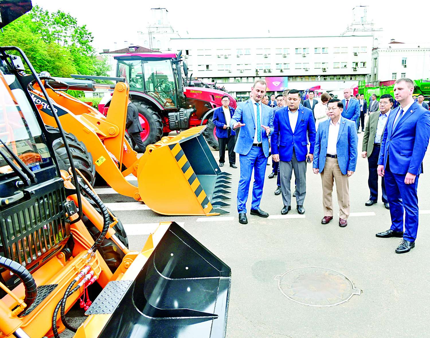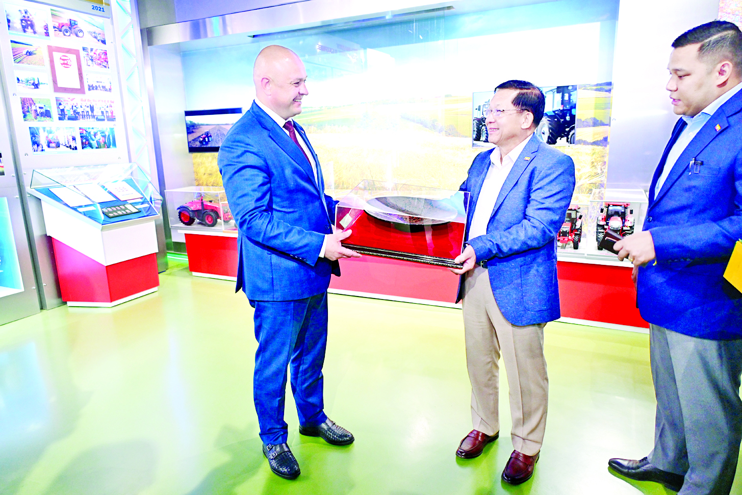 ယင်းနောက် နိုင်ငံတော်စီမံအုပ်ချုပ်ရေးကောင်စီဥက္ကဋ္ဌ နိုင်ငံတော်ဝန်ကြီးချုပ်နှင့် အဖွဲ့ဝင်များသည် ဘယ်လာရုစ်နိုင်ငံမှ ထုတ်လုပ်သည့် စိုက်ပျိုးရေးလုပ်ငန်းသုံး လယ်ယာမြေပြုပြင်ထွန်ယက်ရာတွင် အသုံးပြုသည့်ယာဉ်များ၊ စိုက်ပျိုးရာတွင် အသုံးပြုသည့်ယာဉ်များ၊ ပြုစုပျိုးထောင်ခြင်းနှင့် သွင်းအားစုများ ထည့်သွင်းရာတွင် အသုံးပြုသည့်ယာဉ်များ၊ မမျှော်မှန်းနိုင်သည့် သဘာဝဘေးကျရောက်မှုနှင့် မီးငြှိမ်းသတ်မှုတို့တွင် အသုံးပြုသည့်ယာဉ်များ၊ စိုက်ပျိုးရေးထွက်ကုန်များအား ဈေးကွက်အတွင်းသို့ ပို့ဆောင်ဖြန့်ချိရာတွင် အသုံးပြုသည့်ယာဉ်များနှင့် ယန္တရားများကို စိတ်ပါဝင်စားစွာ လိုက်လံကြည့်ရှုလေ့လာခဲ့ကြပြီး နိုင်ငံတော်စီမံအုပ်ချုပ်ရေးကောင်စီဥက္ကဋ္ဌ နိုင်ငံတော်ဝန်ကြီးချုပ်က သိရှိလိုသည်များ ပြန်လည်မေးမြန်းဆွေးနွေးသည်။