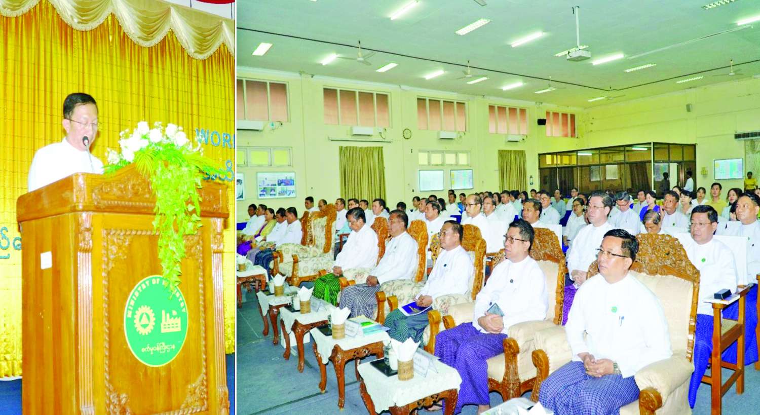အခမ်းအနားသို့ အသေးစား၊ အငယ်စားနှင့် အလတ်စားစီးပွားရေးလုပ်ငန်းများ ဖွံ့ဖြိုးတိုးတက်ရေးလုပ်ငန်းကော်မတီ ဒုတိယဥက္ကဋ္ဌ(၁) ဒုတိယဝန်ကြီးချုပ်နှင့် စီမံကိန်းနှင့်ဘဏ္ဍာရေးဝန်ကြီးဌာန ပြည်ထောင်စုဝန်ကြီး ဦးဝင်းရှိန်၊ စက်မှုဝန်ကြီးဌာန ပြည်ထောင်စုဝန်ကြီး ဒေါက်တာချာလီသန်း၊ သမဝါယမနှင့်ကျေးလက်ဖွံ့ဖြိုးရေးဝန်ကြီးဌာန ပြည်ထောင်စုဝန်ကြီး ဦးလှမိုး၊ သိပ္ပံနှင့် နည်းပညာဝန်ကြီးဌာန ပြည်ထောင်စုဝန်ကြီး ဒေါက်တာမျိုးသိန်းကျော်၊ နေပြည်တော်ကောင်စီဥက္ကဋ္ဌ ဦးသန်းထွန်းဦး၊ ဒုတိယဝန်ကြီးများ၊ ဌာနဆိုင်ရာတာဝန်ရှိသူများ၊ MSME လုပ်ငန်းရှင်များ တက်ရောက်ကြပြီး တိုင်းဒေသကြီးနှင့် ပြည်နယ်များမှ ဒေသဆိုင်ရာ MSME အေဂျင်စီဥက္ကဋ္ဌများနှင့် တာဝန်ရှိသူများက Virtual ဖြင့် တက်ရောက်ကြသည်။