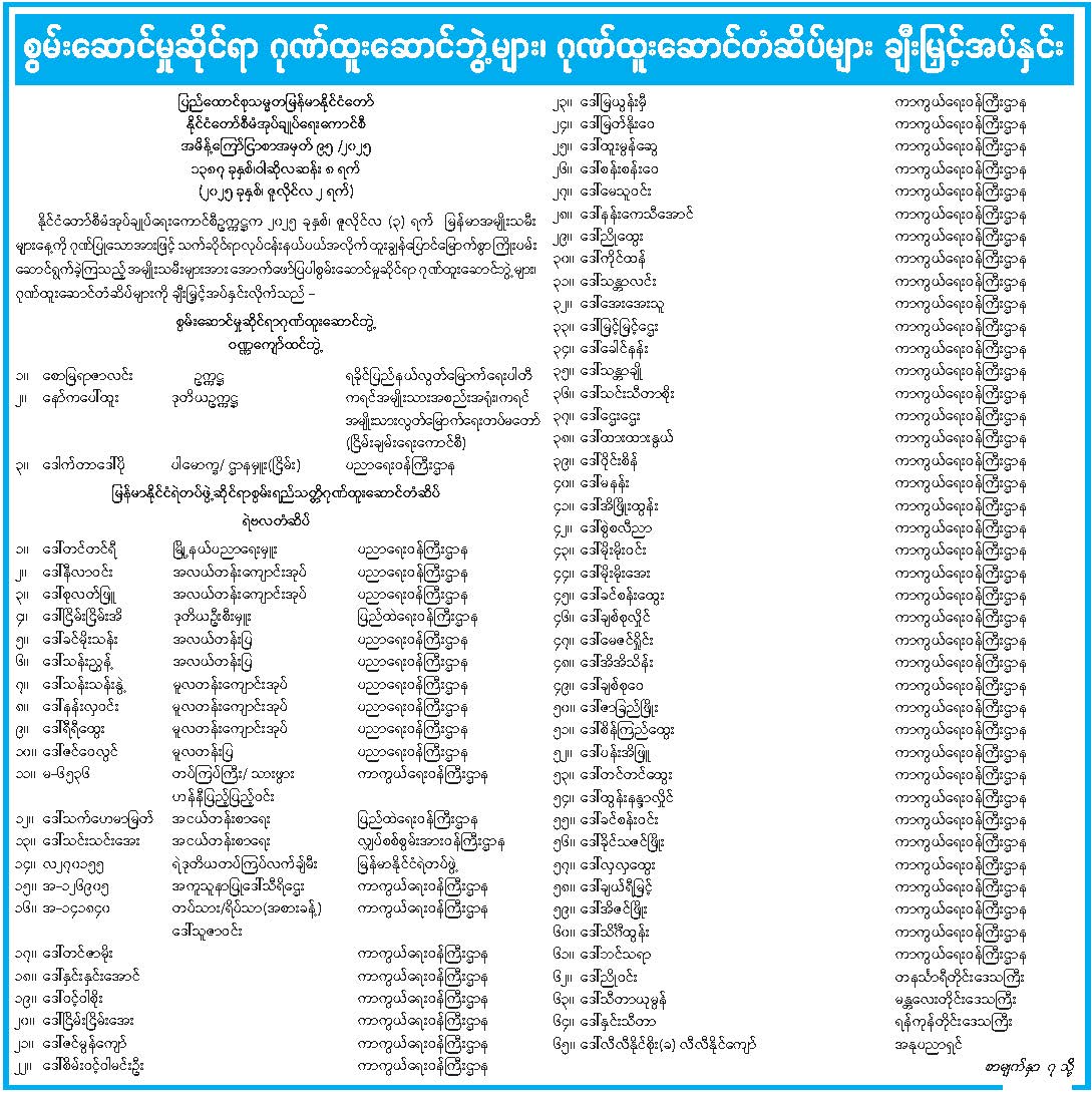 ဦးစီးဌာနနှင့် လုပ်ငန်းများ၏ ကြေညာချက်များ