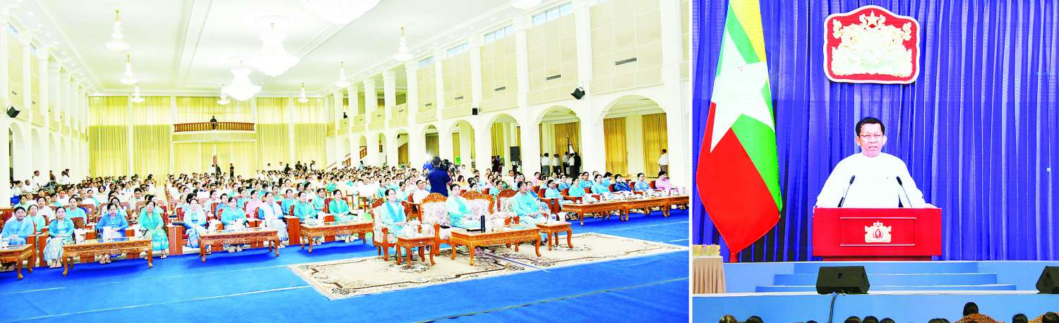 ၂၀၂၅ ခုနှစ် မြန်မာအမျိုးသမီးများနေ့အခမ်းအနားကို ယနေ့နံနက်ပိုင်းတွင် နေပြည်တော်ရှိ ဒက္ခိဏသီရိမြို့နယ် မြန်မာနိုင်ငံအမျိုးသမီးရေးရာအဖွဲ့ချုပ်ရုံး သီရိရတနာခန်းမ၌ ကျင်းပရာ နိုင်ငံတော်စီမံအုပ်ချုပ်ရေးကောင်စီဥက္ကဋ္ဌ နိုင်ငံတော်ဝန်ကြီးချုပ်၏ ဇနီး မြန်မာနိုင်ငံအမျိုးသမီးရေးရာအဖွဲ့ချုပ် ဂုဏ်ထူးဆောင်နာယက ဒေါ်ကြူကြူလှ တက်ရောက်အားပေးသည်။