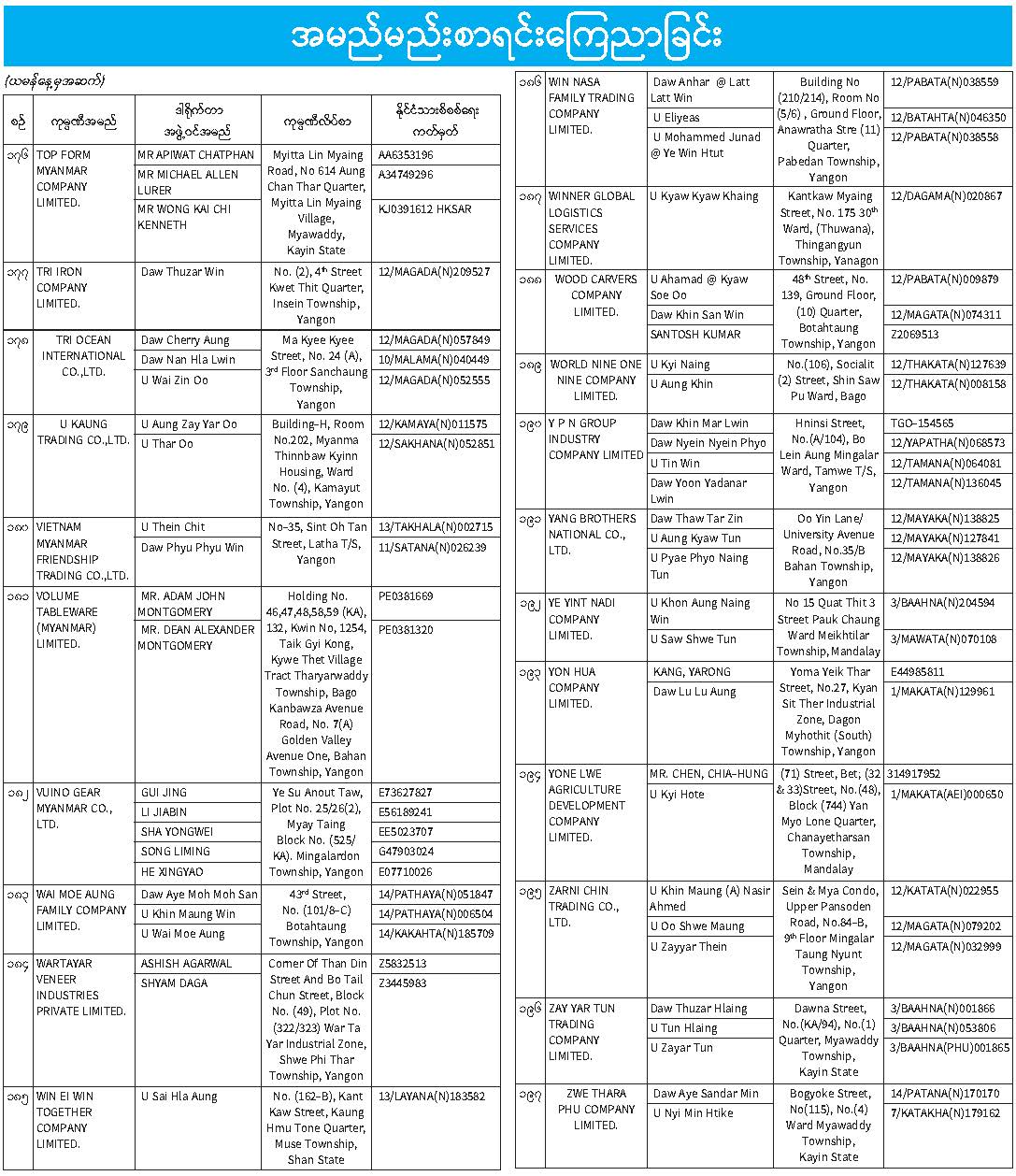 ဦးစီးဌာနနှင့် လုပ်ငန်းများ၏ ကြေညာချက်များ