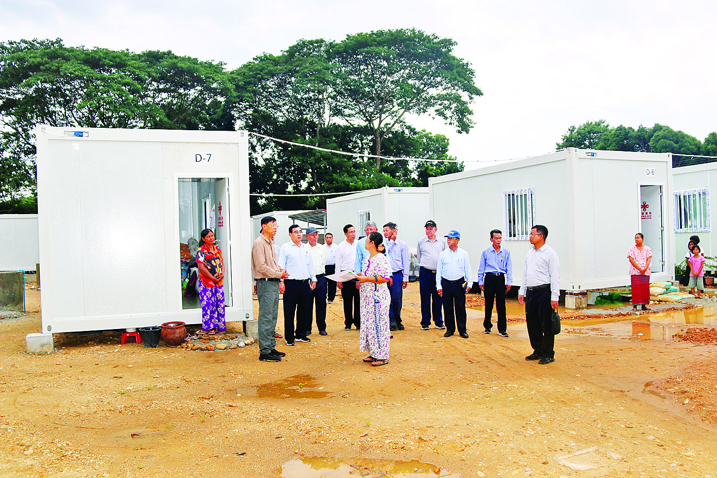 ဦးစွာ ပြည်ထောင်စုဝန်ကြီးနှင့်အဖွဲ့သည် ဝန်ထမ်းများအတွက် Container House များ ဆောက်လုပ်၍ နေရာချထားသည့် နေပြည်တော်ဘူတာကြီး၊ ကုန်းလမ်းပို့ဆောင်ရေးညွှန်ကြားမှုဦးစီးဌာန နေပြည်တော်ရုံး (ရွာတော်)၊ ရုံးအမှတ် (၂)၊ ရုံးအမှတ် (၅)၊ နေပြည်တော်ဗဟိုစာတိုက်ကြီးနှင့် ဒက္ခိဏသီရိမြို့နယ်ရှိ မြန်မာ့ဆက်သွယ်ရေးလုပ်ငန်းနေရာများသို့ သွားရောက်၍ Container House များ ဆောက်လုပ်ပြီးစီးမှု၊ ဝန်ထမ်းနှင့် မိသားစုများအတွက် သောက်ရေသုံးရေ ရရှိရေး၊ လျှပ်စစ်မီးရရှိရေး ဆောင်ရွက်ထားရှိမှုများကို ကြည့်ရှုစစ်ဆေးပြီး စားဖိုဆောင်များ စနစ်တကျဆောက်လုပ်ရန်၊ မိလ္လာနှင့် အခြေခံလိုအပ်ချက်များ ပြည့်စုံမှုရှိစေရေးဆောင်ရွက်ပေးရန်၊ ဝန်ထမ်းများ ယာယီနေထိုင်လျက်ရှိသည့် နေရာများတွင် သီးပင်စားပင်များ စနစ်တကျစိုက်ပျိုးရန်၊ အိမ်ရာအလိုက် တည်မြဲအမိန့်ထုတ်ပြန်ရန်၊ ဝန်ထမ်းများ အေးချမ်းသာယာပျော်ရွှင်စွာနေထိုင်နိုင်ရေး လိုအပ်ချက်များကို ဆောင်ရွက်ပေးရန်၊ တပ်ဆင်တည်ဆောက်ရန် ကျန်ရှိနေ သော Container House များကို သတ်မှတ်ရက်အတွင်း အချိန်မီပြီးစီးအောင် ဆောင်ရွက်ကြရန်နှင့် ပြောင်းရွှေ့ရန်ကျန်ရှိသော ဝန်ထမ်းများနှင့် မိသားစုဝင်များကို အမြန်ဆုံးနေရာချထားပေးနိုင်ရေး ဆောင်ရွက်ရန်တာဝန်ရှိသူများကို မှာကြားသည်။