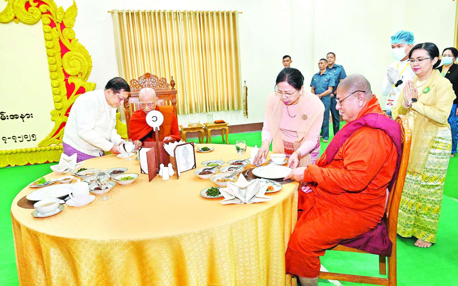 အခမ်းအနားအပြီးတွင် နိုင်ငံတော်စီမံအုပ်ချုပ်ရေးကောင်စီဥက္ကဋ္ဌ နိုင်ငံတော်ဝန်ကြီးချုပ်နှင့် အခမ်းအနားတက်ရောက်လာကြသူများသည် ဆရာတော်၊ သံဃာတော်များအား နေ့ဆွမ်းဆက်ကပ်လှူဒါန်းခဲ့ကြကြောင်း သတင်းရရှိသည်။