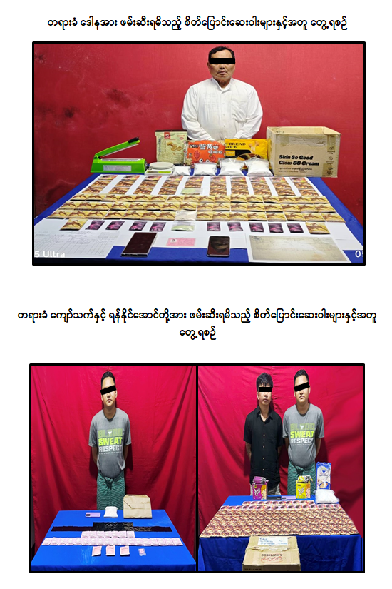 တောင်ကြီးမြို့နယ်၊ မင်္ဂလာတောင်ညွန့်မြို့နယ်နှင့် တောင်ဥက္ကလာပမြို့နယ်တို့၌ မူးယစ်ဆေးဝါးများ ဖမ်းဆီးရမိ