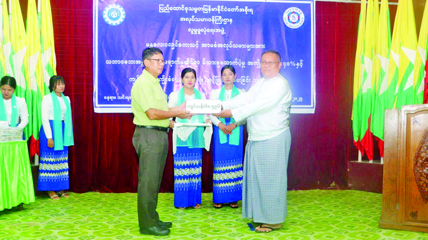 အခမ်းအနားတွင် အမြဲတမ်းအတွင်းဝန်က အမှာစကားပြောကြားပြီး ရမည်းသင်းခရိုင်စီမံအုပ်ချုပ်ရေးအဖွဲ့ဥက္ကဋ္ဌထံ အာမခံအလုပ်သမား ၈၀၃ ဦးအတွက် လူမှုဖူလုံရေးထောက်ပံ့ကူညီမှု အကျိုးခံစားခွင့် ၄၀ ရာခိုင်နှုန်းဖြစ်သည့် ငွေကျပ် ၆၈ ဒသမ ၅၉၆ သန်းကိုလည်းကောင်း၊ မန္တလေးငလျင်ကြီးဒဏ်ကြောင့် လုပ်ငန်းခွင်အတွင်းသေဆုံးခဲ့သူ ကိုးဦးအတွက် ကျန်ရစ်သူအကျိုးခံစားခွင့် ငွေလုံးငွေကျပ် ၁၂၇၆ ဒသမ ၈၇၅ သိန်းကို ၎င်းတို့၏ကျန်ရစ်သူ မိသားစုများထံသို့လည်းကောင်း ပေးအပ်ခဲ့ကြောင်း သိရသည်။