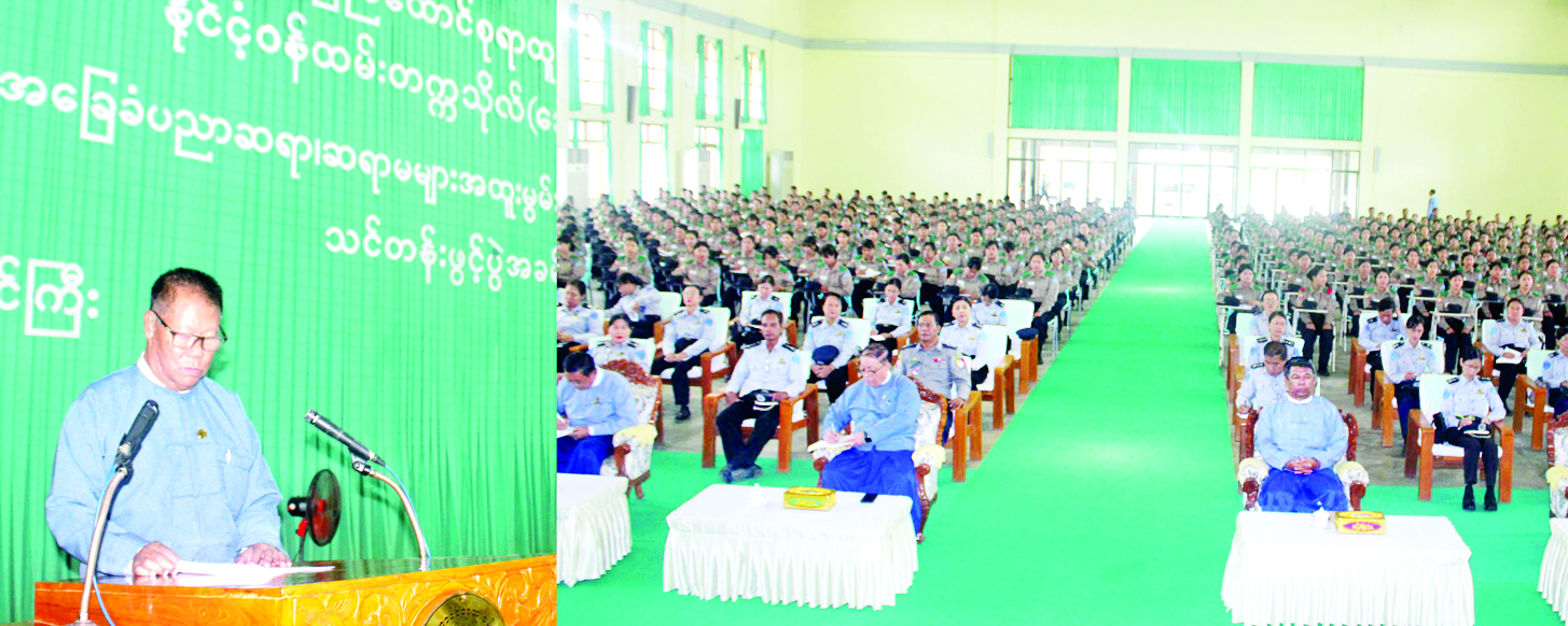 ဦးစွာ ပြည်ထောင်စုရာထူးဝန်အဖွဲ့ဥက္ကဋ္ဌ ဦးအောင်သော်က ဆရာများသည်အနန္တဂိုဏ်းဝင် လက်ဦးဆရာဖြစ်သည့်အတွက် ကျောင်းသားလူငယ်များကို အသိပညာ၊ အတတ်ပညာ၊ ကာယ၊ ဉာဏ၊ စာရိတ္တအပြင် စိတ်ဓာတ်ကောင်းမွန်ပြီး နိုင်ငံချစ်စိတ်၊ မျိုးချစ်စိတ်ရှိရေး၊ အမျိုးသားရေး စရိုက်လက္ခဏာများ ထိန်းသိမ်းစောင့်ရှောက်တတ်ပြီး ဗလငါးတန်နှင့်ပြည့်စုံသော လူငယ်များဖြစ်စေရေးနှင့် တိုင်းပြည်၏အနာဂတ်အတွက် စိတ်ဓာတ်၊ စည်းကမ်းနှင့် အရည်အသွေးကောင်းမွန်သည့် လူ့စွမ်းအားအရင်းအမြစ်ကောင်းများ မွေးထုတ်နိုင်ရေးလေ့ကျင့်သင်ကြားပေးရန်လိုကြောင်း၊ မိမိတို့သည် တိုင်းပြည်နှင့် ပြည်သူတို့၏ အနာဂတ်အတွက် အရည်အချင်းပြည့်ဝသော နိုင်ငံ့သားကောင်းများဖြစ်စေရေး၊ လူငယ်လူရွယ်များကို အခြေခံကျကျ လေ့ကျင့်သင်ကြားပေးရန် တာဝန်ယူထားရသူများဖြစ်သည်ကို ဂုဏ်ယူတတ်စေပြီး တာဝန်ယူရသည့် လုပ်ငန်းများကို စဉ်ဆက်မပြတ် မှန်မှန်ကန်ကန်လုပ်ဆောင်၍ နိုင်ငံ့အကျိုးကို ရှေးရှုပြီး ပြည်သူကို အလုပ်အကျွေးပြုရန်လိုကြောင်း တိုက်တွန်းမှာကြားသည်။