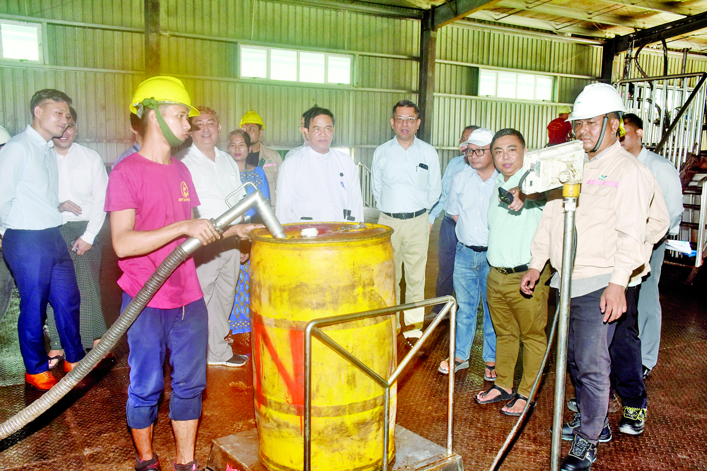 စားသုံးဆီ တင်သွင်းသိုလှောင်ဖြန့်ဖြူးခြင်းလုပ်ငန်းကြီးကြပ်ရေးကော်မတီဥက္ကဋ္ဌ စီးပွားရေးနှင့်ကူးသန်းရောင်းဝယ်ရေးဝန်ကြီးဌာန ဒုတိယဝန်ကြီး ဦးမင်းမင်းသည် စားသုံးသူရေးရာဦးစီးဌာန ညွှန်ကြားရေးမှူးချုပ်နှင့် တာဝန်ရှိသူများနှင့်အတူ ယနေ့နံနက်ပိုင်းတွင် စားသုံးဆီသိုလှောင်ကန်များ မြေပြင်လက်ကျန်အခြေအနေကို သွားရောက်ကြည့်ရှုစစ်ဆေးသည်။