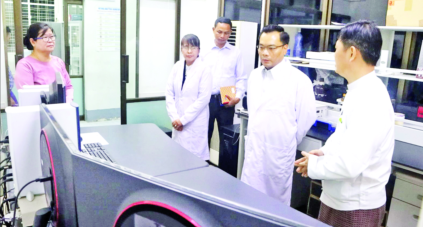 ဆက်လက်၍ အမျိုးသား ဓာတ်ခွဲခန်းကို နိုင်ငံတကာအသိ အမှတ်ပြုလက်မှတ်ရရှိရန် ဆောင်ရွက်နေသည့်လုပ်ငန်းများ၊ ဓာတ်ခွဲတိုင်းတာမှု ဝန်ဆောင်မှုများပေးနေသည့် အနီအောက် ရောင်ခြည်သုံးဓာတ်ခွဲခန်း၊ X ရောင်ခြည်လှိုင်းကွေ့ခြင်း နည်းပညာသုံးဓာတ်ခွဲခန်းနှင့် နမူနာပစ္စည်းများကို အငွေ့အဖြစ်ပြောင်းပြီး အော်ဂဲနစ်ဓာတုဒြပ်ပေါင်းများ ခွဲခြမ်းစိတ်ဖြာပေးခြင်း ဓာတ်ခွဲခန်းများကို ကြည့်ရှုစစ်ဆေးသည်။
