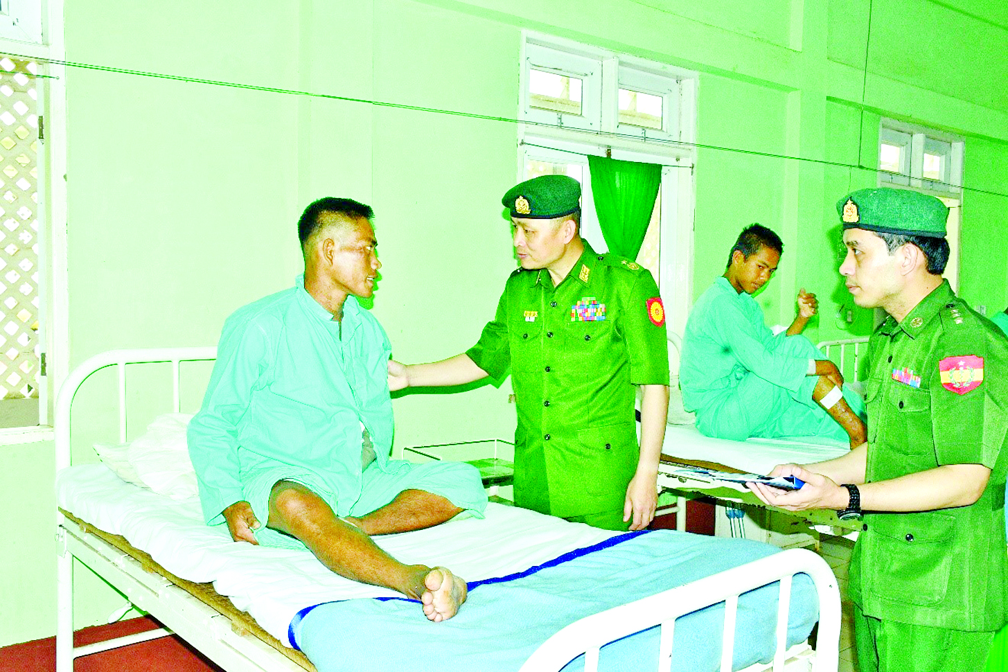 ရှမ်းပြည်နယ်(တောင်ပိုင်း) ဗထူးတပ်မြို့ရှိ တပ်မတော်ဆေးရုံ၌ တက်ရောက်ကုသမှုခံယူလျက်ရှိသည့် အရာရှိ၊ စစ်သည်၊ မိသားစုဝင်များ၊ မြန်မာနိုင်ငံရဲတပ်ဖွဲ့ဝင်များ၊ ပြည်သူ့စစ်(ဌာနေ)တပ်ဖွဲ့ဝင်များနှင့် ဒေသခံပြည်သူများအား ယနေ့မွန်းလွဲပိုင်းတွင် အရှေ့ပိုင်းတိုင်းစစ်ဌာနချုပ်တိုင်းမှူး ဗိုလ်ချုပ်ဇော်မင်းလတ်နှင့် တာဝန်ရှိသူများက သွားရောက်ကြည့်ရှု၍ တစ်ဦးချင်း၏ ရောဂါဖြစ်ပွားမှု၊ ဆေးကုသပေးထားမှုနှင့် ကျန်းမာရေးတိုးတက်ကောင်းမွန်မှု အခြေအနေများကို မေးမြန်းအားပေးစကားပြောကြားပြီး အာဟာရဖြည့်စားသောက်ဖွယ်ရာများနှင့် ချီးမြှင့်ငွေများ ပေးအပ်သည်။