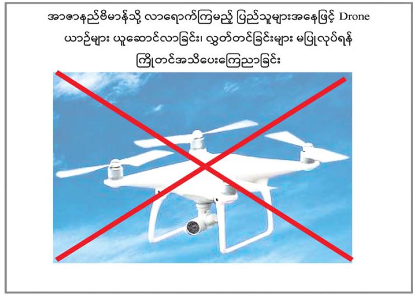 အာဇာနည်ဗိမာန်သို့ လာရောက်ကြမည့် ပြည်သူများအနေဖြင့် Drone ယာဉ်များ ယူဆောင်လာခြင်း၊ လွှင့်တင်ခြင်းများ မပြုလုပ်ရန် ကြိုတင်အသိပေးကြေညာခြင်း 07/14/2025