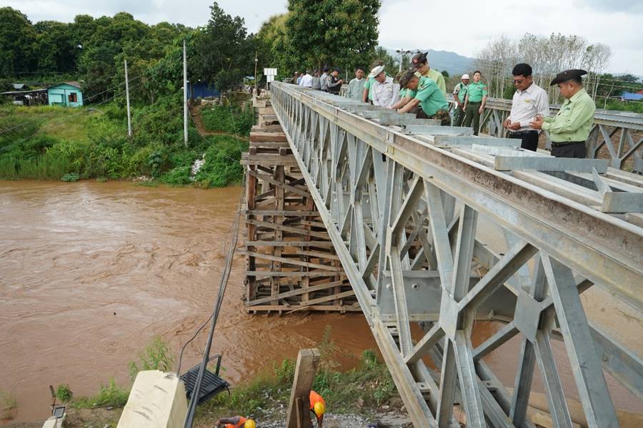 ရှမ်းပြည်နယ်(အရှေ့ပိုင်း) မိုင်းဆတ်မြို့နယ် မိုင်းဆတ်-တာချီလိတ်လမ်းပေါ်ရှိ ဆိုက်ခေါင်တံတားသစ်စီမံကိန်းနေရာနှင့် လက်ရှိအသုံးပြုလျက်ရှိသော ဘေလီတံတား၏ ကြံ့ခိုင်မှုအခြေအနေများအား ဇူလိုင် ၁၄ ရက်ညနေပိုင်းတွင် တြိဂံဒေသတိုင်းစစ်ဌာနချုပ်တိုင်းမှူး ဗိုလ်ချုပ်စိုးလှိုင်နှင့် တာဝန်ရှိသူများက သွားရောက်ကြည့်ရှုစစ်ဆေးသည်။
