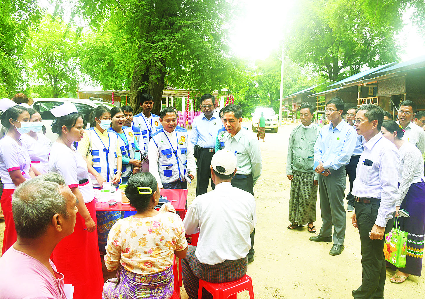 ဆက်လက်၍ ကော်မတီဥက္ကဋ္ဌ ပြည်ထောင်စုဝန်ကြီးနှင့် အဖွဲ့သည် ညောင်ပင်သာကျေးရွာအတွင်းရှိ ရေဘေးသင့်ပြည်သူများ နေထိုင်နိုင်ရန် တည်ဆောက်ပေးထားသည့် လူနေအိမ်များကို ကြည့်ရှုစစ်ဆေးပြီး အိမ်ထောင်စုများအလိုက် နေထိုင်စားသောက်မှုအခြေအနေများ၊ သောက်သုံးရေနှင့် လျှပ်စစ်မီးရရှိမှုအခြေအနေများကို မေးမြန်း၍ လိုအပ်သည်များကို ဖြည့်ဆည်းဆောင်ရွက်ပေးကာ နဝင်းချောင်းကမ်းထိန်းလုပ်ငန်းလျာထားဆောင်ရွက်နေမှု အခြေအနေ၊ ကျေးရွာအတွင်း တပ်ကုန်းမြို့ ခုတင် (၁၀၀) ဆံ့ ပြည်သူ့ဆေးရုံမှ အထူးကုဆရာဝန်များက ကျန်းမာရေးစောင့်ရှောက်မှုလုပ်ငန်းများ ကွင်းဆင်းဆောင်ရွက်ပေးနေမှုအခြေအနေ၊ နေပြည်တော်လူမှုဝန်ထမ်းရုံးမှ ထိခိုက်လွယ်အုပ်စုလေးအုပ်စုတို့မှ ပြည်သူများအား စောင့်ရှောက်ပေးနေမှုနှင့် ကျေးရွာအတွင်း အသားကဏ္ဍဖူလုံစေရန်ရည်ရွယ်၍ မွေးမြူရေးလုပ်ငန်းများ ဆောင်ရွက်နေမှုအခြေအနေတို့ကို ကြည့်ရှုစစ်ဆေးကြသည်။