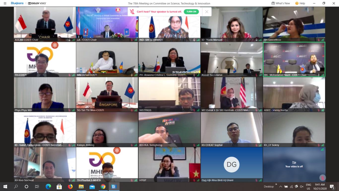 (၇၈) ကြိမ်မြောက် အာဆီယံသိပ္ပံ၊ နည်းပညာနှင့် တီထွင်ဆန်းသစ်မှု ကော်မတီ အစည်းအဝေး (The 78th Meeting of ASEAN Committee on Science, Technology and Innovation- COSTI 78) ကို အောက်တိုဘာ ၂၁ ရက်မှ အောက်တိုဘာ ၂၂ ရက် အထိ အင်ဒိုနီးရှားနိုင်ငံ၊ ဂျကာတာမြို့တွင် ဗီဒီယိုကွန်ဖရင့်ဖြင့် ကျင်းပသည်။
