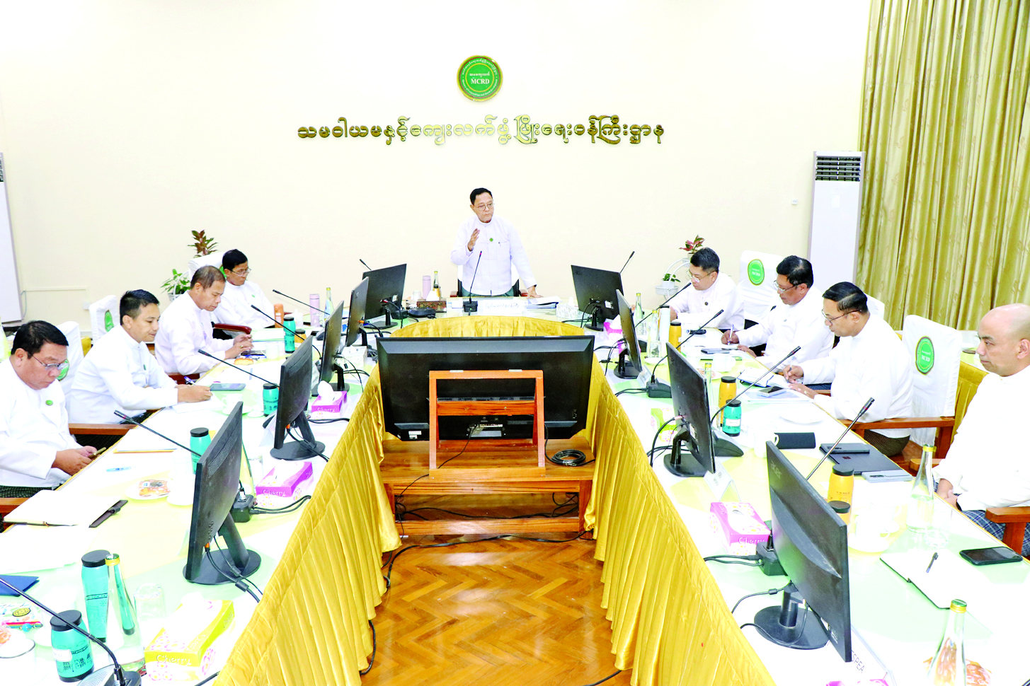 ယင်းနောက် မြန်မာနိုင်ငံတော်ဗဟိုဘဏ်မှ ကိုယ်စားလှယ်နှင့် ကော်မတီအဖွဲ့ဝင်ဦးစီးဌာနများမှ ကိုယ်စားလှယ်များက ဝိုင်းဝန်းဆွေးနွေးတင်ပြကြရာ တင်ပြချက်များအပေါ် ပြည်ထောင်စုဝန်ကြီးက လိုအပ်သည်များ ဖြည့်စွက်မှာကြားခဲ့ကြောင်း သိရသည်။