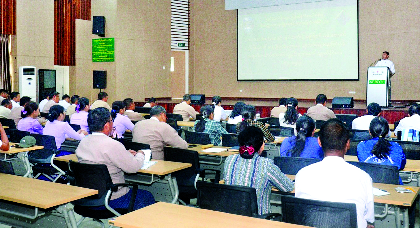 ပန်းတိုင်အထွက်နှုန်းရရှိရေး (Yield Gap Analysis) အထွက် နှုန်းကွာဟချက်များ အကြိုဆန်းစစ်လေ့လာခြင်းအပေါ် တွေ့ရှိချက်များအား သုံးသပ်ဆွေးနွေးခြင်းနှင့် အချက်အလက်ကောက်ယူရန် မေးခွန်းပုံစံများအတည်ပြုချမှတ်နိုင်ရေး ဆွေးနွေးပွဲကို ယနေ့တွင် နေပြည်တော် ဇေယျာသီရိမြို့နယ် ရေဆင်းရှိ စိုက်ပျိုးပညာပေးရေးနှင့် ကျေးလက်ဒေသဖွံ့ဖြိုးရေးသင်တန်းကျောင်း AERDTC ခန်းမ၌ ကျင်းပသည်။