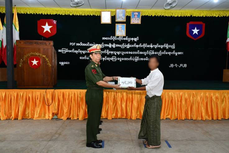 ယနေ့တွင်လည်း MDY-PDF အဖွဲ့မှ အမျိုးသား ၁၄ ဦး နှင့် အမျိုးသမီး ၁ ဦး၊ စုစုပေါင်း ၁၅ ဦးတို့သည် ဥပဒေဘောင်အတွင်း ငြိမ်းချမ်းစွာနေထိုင်လိုခြင်း၊ နိုင်ငံတော်အစိုးရ၏ ငြိမ်းချမ်းရေးလုပ်ငန်းစဉ်များအား ယုံကြည်လက်ခံလာခြင်းများကြောင့် ဥပဒေဘောင်အတွင်းကို ပြန်လည်ဝင်ရောက်လာခဲ့ရာ ၎င်းတို့ကို တာဝန်ရှိသူများက ပြန်လည်လက်ခံပြီး လိုအပ်သည့် ကူညီထောက်ပံ့မှုများ ဆောင်ရွက်ပေးခဲ့ကာ မိဘအုပ်ထိန်းသူများထံကို စနစ်တကျပြန်လည်လွှဲပြောင်း အပ်နှံပေးလျက်ရှိသည်။