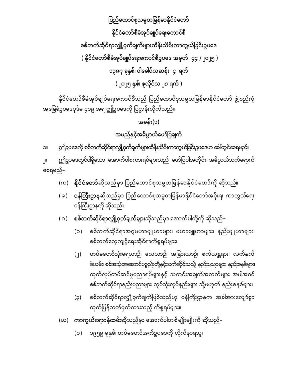ပြဌာန်းပြီးဥပဒေများ