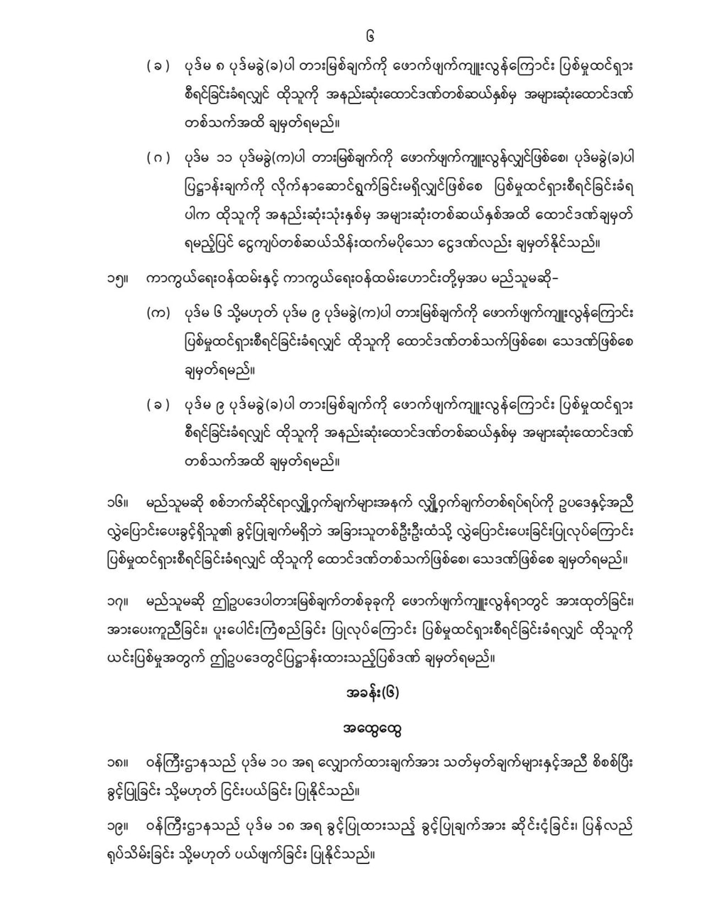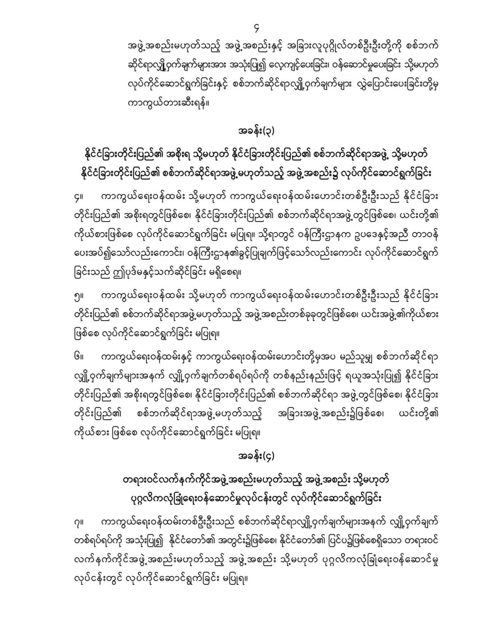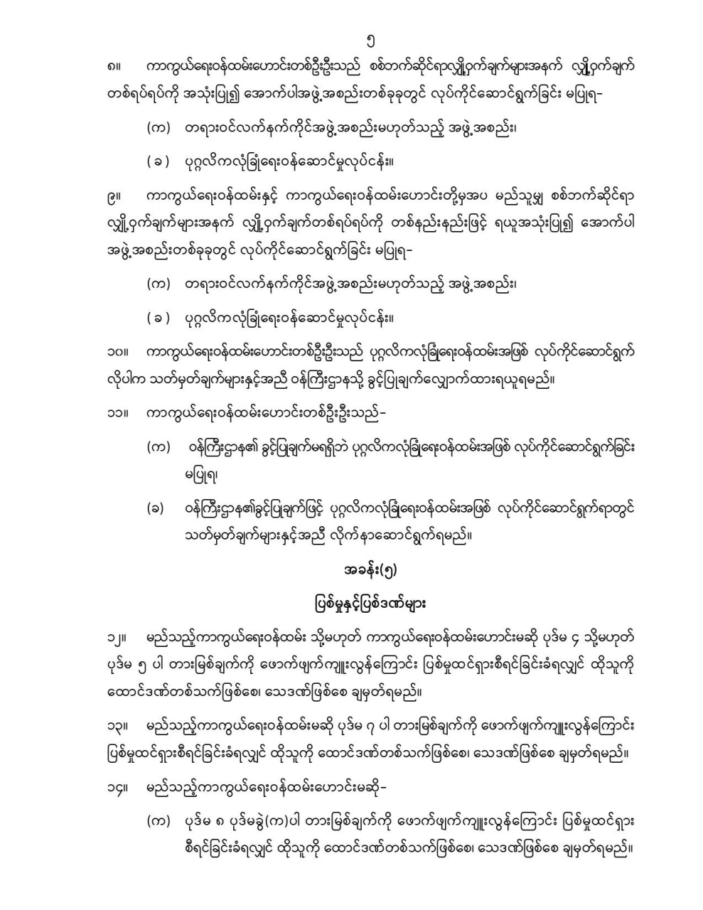ဦးစီးဌာနနှင့် လုပ်ငန်းများ၏ ကြေညာချက်များ