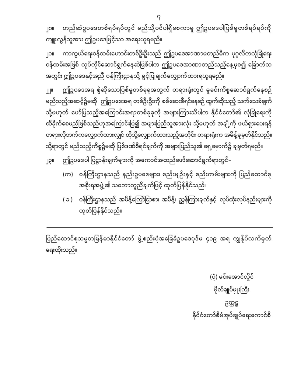 ဝန်ကြီးဌာန ကြေညာချက်များ
