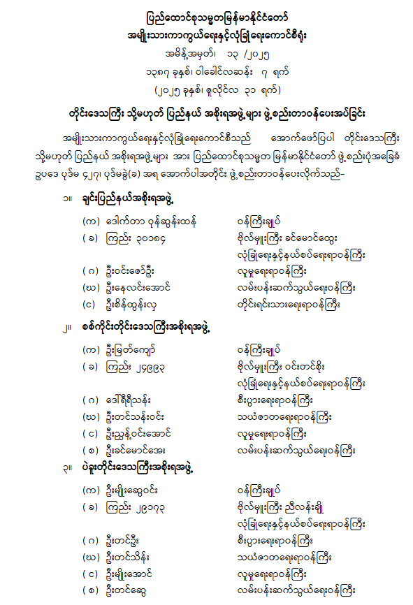 ဝန်ကြီးဌာန ကြေညာချက်များ