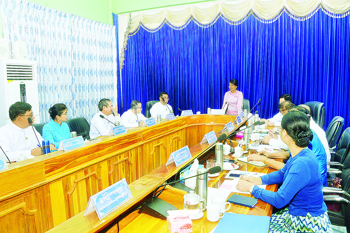 ထို့နောက် ဒုတိယဝန်ကြီးများနှင့် ဦးစီးဌာနများမှ ညွှန်ကြားရေးမှူးချုပ်များ၊ ဝန်ကြီးရုံးညွှန်ကြားရေးမှူးများက လက်ရှိဆောင်ရွက်လျက်ရှိသည့် လုပ်ငန်းများ၊ ဆက်လက်ဆောင်ရွက်မည့်လုပ်ငန်းစဉ်များနှင့်စပ်လျဉ်း၍ ရှင်းလင်းတင်ပြကြပြီး ပြည်ထောင်စုဝန်ကြီးက နိဂုံးချုပ်အမှာစကား ပြောကြားခဲ့ကြောင်း သိရသည်။