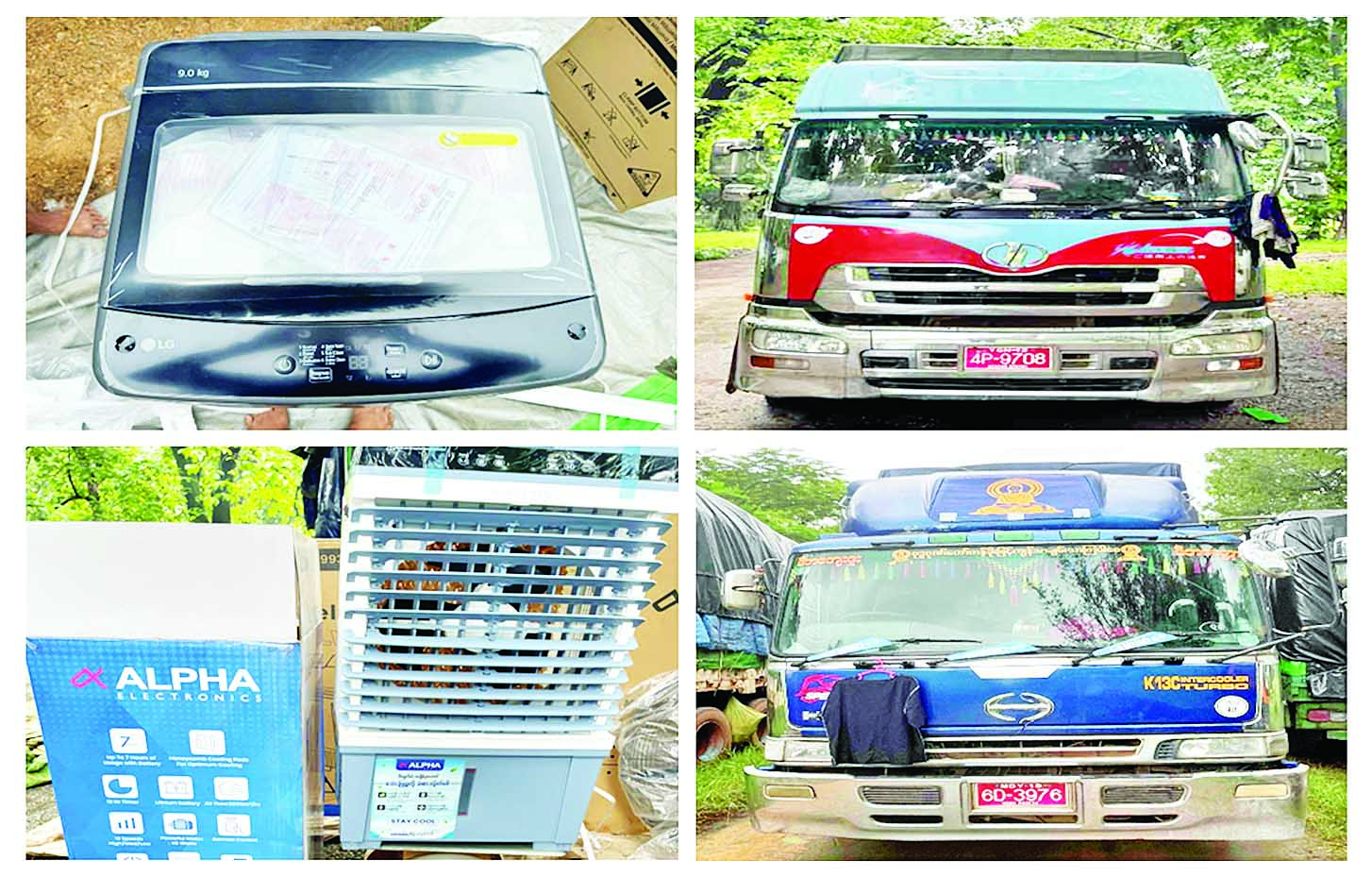 ထို့အတူ သြဂုတ် ၃ ရက်တွင် စစ်ကိုင်းတိုင်းဒေသကြီး တရားမဝင်ကုန်သွယ်မှုတိုက်ဖျက်ရေးအထူးအဖွဲ့၏ စီမံခန့်ခွဲမှုဖြင့် တာဝန်ကျပူးပေါင်းအဖွဲ့က စစ်ဆေးမှုများဆောင်ရွက်ခဲ့ရာ ရတနာပုံတံတား ပူးပေါင်းစစ်ဆေးရေးဂိတ်၌ တရားဝင်စာရွက်စာတမ်းအထောက်အထား တင်ပြနိုင်ခြင်းမရှိသည့် လုပ်ငန်းသုံးပစ္စည်း ၁၁ မျိုး၊ လူသုံးကုန်ပစ္စည်းသုံးမျိုး၊ စားသောက်ကုန်ပစ္စည်းတစ်မျိုး (ခန့်မှန်းတန်ဖိုးငွေကျပ် ၂၈၅၉၉၀၀၀)ကို ပို့ကုန်သွင်းကုန်ဥပဒေအရလည်းကောင်း တရားမဝင်စက်သုံးဆီ၊ ဒီဇယ်ဆီကိုးပီပါ (ခန့်မှန်းတန်ဖိုးငွေကျပ် ၄၇၀၀၀၀၀)ကို ရေနံနှင့်ရေနံထွက်ပစ္စည်းဆိုင်ရာ ဥပဒေအရလည်းကောင်း စုစုပေါင်း ခန့်မှန်းတန်ဖိုးငွေကျပ် ၃၃၂၉၉၀၀၀ ကို ဖမ်းဆီးအရေးယူ ဆောင်ရွက်လျက်ရှိသည်။