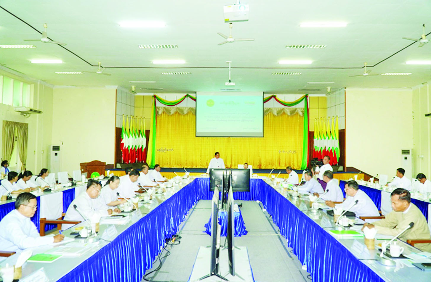 လက်ဆွဲကောက်စိုက်စက်အပါအဝင် လယ်ယာသုံးစက်ကိရိယာများ အရည်အသွေးမီ ထုတ်လုပ်နိုင်ရေးနှင့် ထုတ်လုပ်ရေးလုပ်ငန်းများ တိုးတက်ကောင်းမွန်စေရေးဆွေးနွေးပွဲကို ယနေ့မွန်းလွဲပိုင်းတွင် စက်မှုဝန်ကြီးဌာန ရုံးအမှတ် (၃၀) အစည်းအဝေးခန်းမ၌ကျင်းပရာ စက်မှုဝန်ကြီးဌာန ပြည်ထောင်စုဝန်ကြီး ဒေါက်တာချာလီသန်း၊ စွမ်းအင်ဝန်ကြီးဌာန ပြည်ထောင်စုဝန်ကြီး ဦးကိုကိုလွင်၊ စိုက်ပျိုးရေး၊ မွေးမြူရေးနှင့် ဆည်မြောင်းဝန်ကြီးဌာန ဒုတိယဝန်ကြီး ဦးဗိုလ်ဗိုလ်ကျော်နှင့် ဆက်စပ်ဝန်ကြီးဌာနများမှ တာဝန်ရှိသူများ တက်ရောက်ကြသည်။