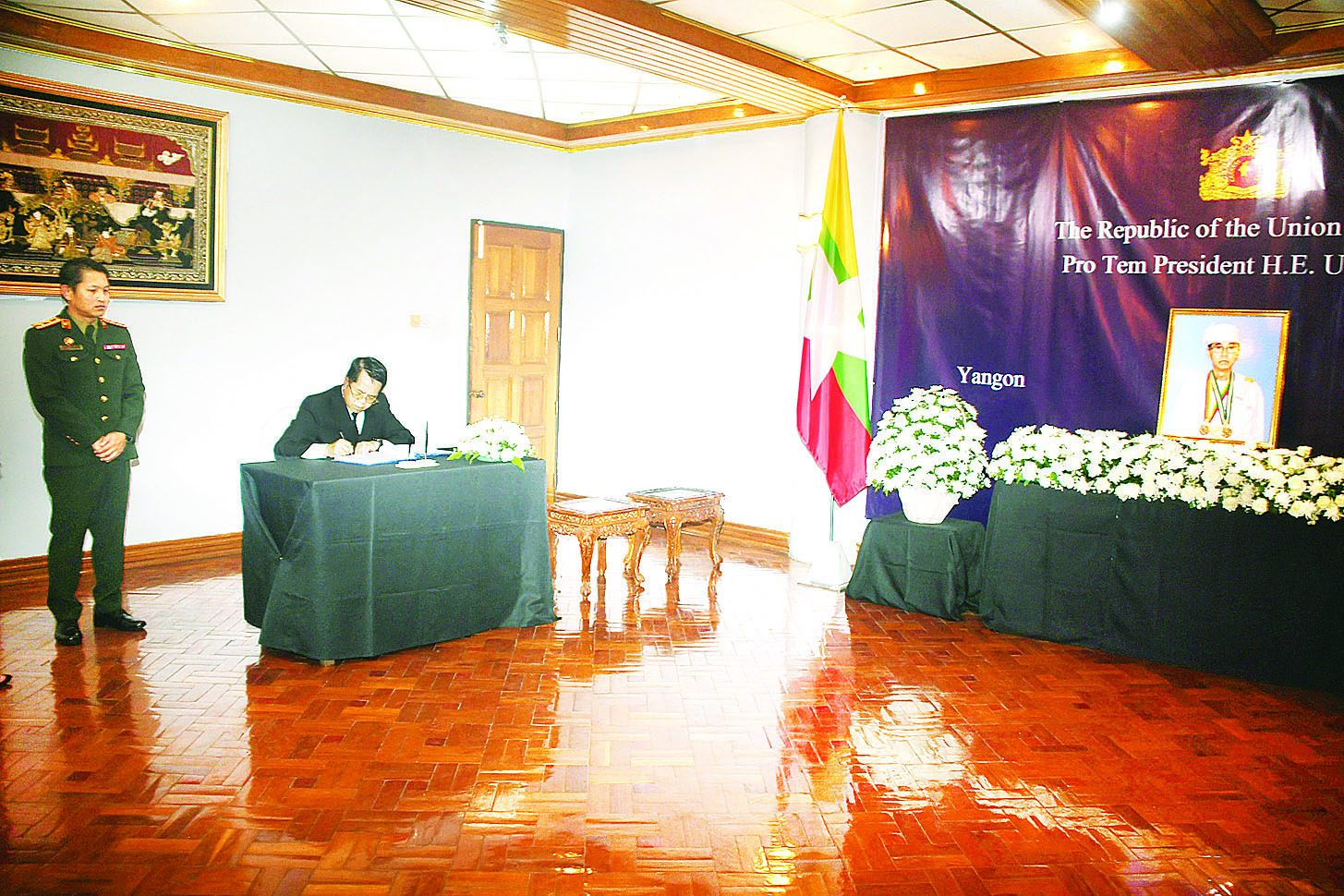 ယနေ့တွင် မြန်မာနိုင်ငံဆိုင်ရာ သံရုံးအကြီးအကဲများဖြစ်သည့် နီပေါသံအမတ်ကြီး H.E. Mr. Harishchandra Ghimire ၊ ထိုင်းသံအမတ်ကြီး H.E. Mr. Mogkol Visitstump၊ ဘင်္ဂလားဒေ့ရှ် သံအမတ်ကြီး Dr. Md. Monwar Hossain ၊ ဘရာဇီးသံအမတ်ကြီး H.E. Mr. Gustavo Rocha de Menezes ၊ အိန္ဒိယသံအမတ်ကြီး H.E. Mr. Abhay Thakur ၊ ယူအေအီးသံအမတ်ကြီး H.E. Mr. Mutaz Abdullah Abduljaleel Mohamed Al Faheem ၊ တရုတ်သံအမတ်ကြီး H.E. Ms. Ma Jia၊ ကမ္ဘောဒီးယား သံအမတ်ကြီး H.E. Mr. CHENG Manith ၊ လာအိုသံအမတ်ကြီး H.E. Mr. Bounphieng CHANTHAVONG နှင့် အစ္စရေးသံရုံးယာယီတာဝန်ခံ Mrs. Ruth Zakh ၊ တီမောလက်စ်တေ သံရုံးယာယီတာဝန်ခံ Mr. Olandino Rui de Andrade နှင့် ဟိုလီဆီးသံရုံး ယာယီတာဝန်ခံ၏ ကိုယ်စားလှယ် Fr. Hilary တို့က ဝမ်းနည်းကြောင်းမှတ်တမ်းစာအုပ်တွင် လာရောက်လက်မှတ်ရေးထိုးခဲ့ကြသည်။