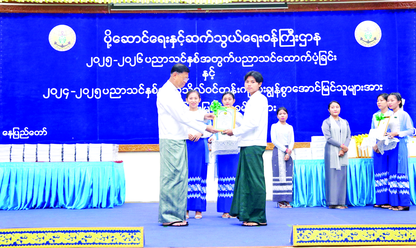 ၂၀၂၅-၂၀၂၆ ပညာသင်နှစ် အခြေခံပညာကျောင်းများတွင် တက်ရောက်သင်ကြားလျက်ရှိသည့် ပို့ဆောင်ရေးနှင့်ဆက်သွယ်ရေးဝန်ကြီးဌာန ဝန်ထမ်းများ၏ သားသမီးများ ပညာသင်ထောက်ပံ့ခြင်းနှင့် ၂၀၂၄-၂၀၂၅ ပညာသစ်နှစ်တက္ကသိုလ်ဝင်စာမေးပွဲတွင် ဂုဏ်ထူးဖြင့် ထူးချွန်စွာအောင်မြင်ခဲ့ကြသည့် ဝန်ထမ်းများ၏ သားသမီးများအား ဂုဏ်ပြုဆုချီးမြှင့်ပွဲအခမ်းအနားကို ယနေ့နံနက်ပိုင်းတွင် ပို့ဆောင်ရေးနှင့်ဆက်သွယ်ရေးဝန်ကြီးဌာန ရုံးအမှတ်(၂)၌ ကျင်းပသည်။