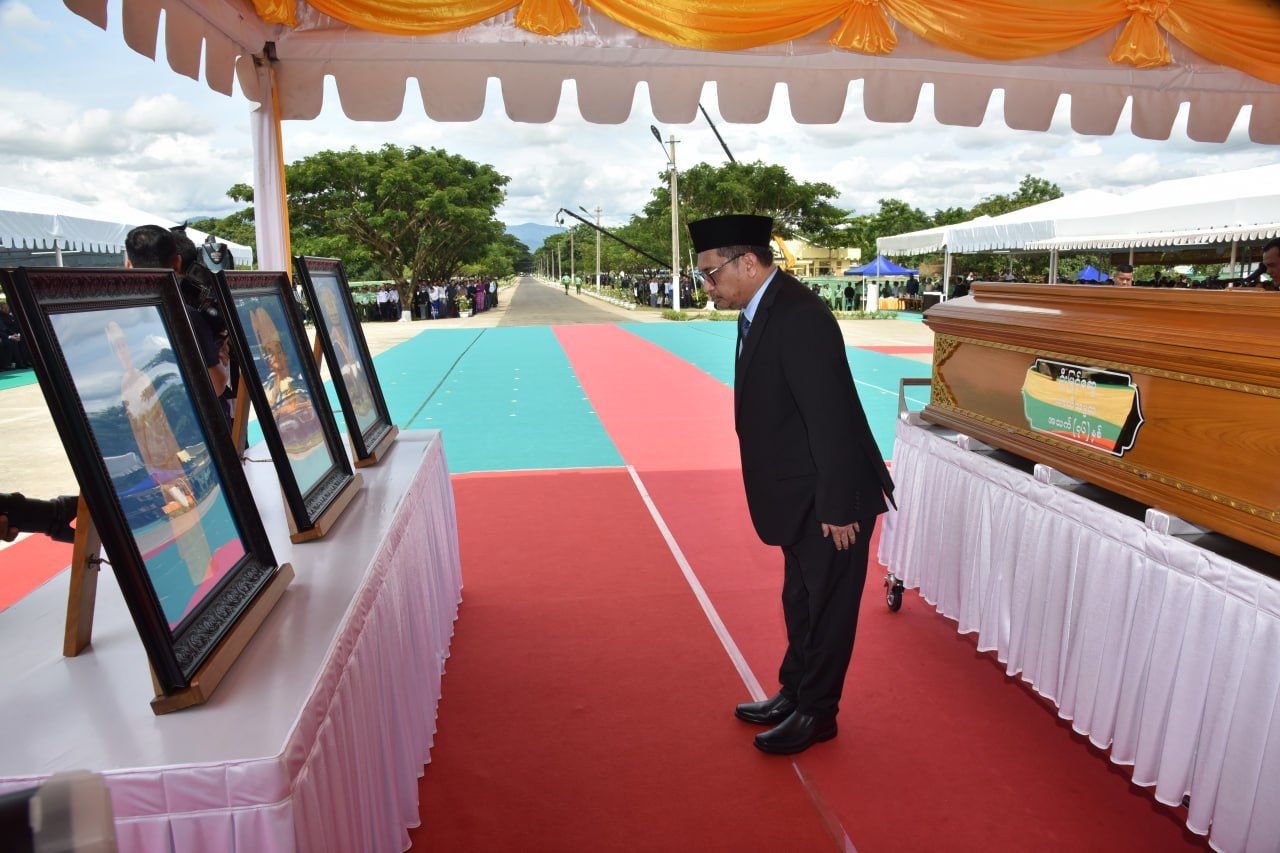 ပြည်ထောင်စုသမ္မတမြန်မာနိုင်ငံတော်၊ ယာယီသမ္မတဦးမြင့်ဆွေ၏ နိုင်ငံတော် ဈာပနအခမ်းအနားအား ယနေ့နေ့လယ်ပိုင်းတွင် နေပြည်တော်၊ တပ်မတော်ဆေးရုံကြီးရှိ ငြိမ်းအေးဇရပ်နှင့် တပ်မတော်စစ်သင်္ချိုင်း (နေပြည်တော်) တို့၌ ကျင်းပပြုလုပ်ရာ နိုင်ငံတော်လုံခြုံရေးနှင့် အေးချမ်းသာယာရေးကော်မရှင်ဥက္ကဋ္ဌ တပ်မတော်ကာကွယ်ရေးဦးစီးချုပ် ဗိုလ်ချုပ်မှူးကြီးမင်းအောင်လှိုင်နှင့်ဇနီး ဒေါ်ကြူကြူလှတို့ တက်ရောက်သည်။