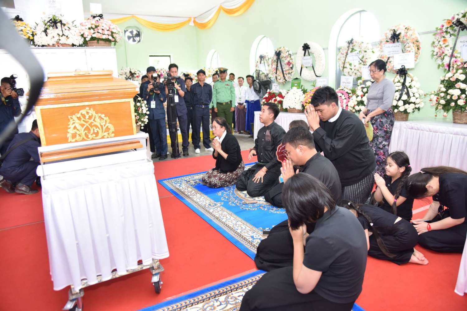 ထို့နောက် ယာယီသမ္မတဦးမြင့်ဆွေ၏ဇနီး ဒေါ်ခင်သက်ဌေးနှင့် မိသားစုများက ယာယီသမ္မတဦးမြင့်ဆွေ၏ ကြွင်းကျန်ရစ်သောရုပ်ကလာပ်အား ထပ်မံကြည့်ရှုဂါရဝပြုကြသည်။