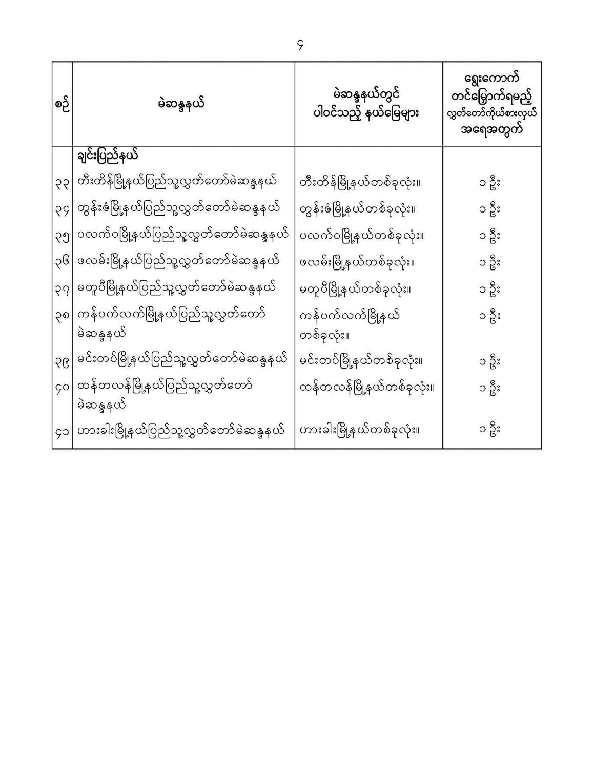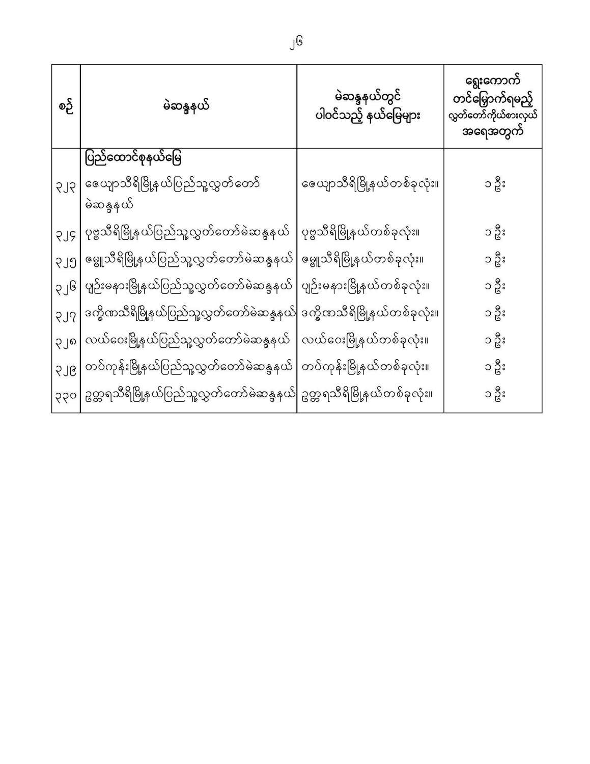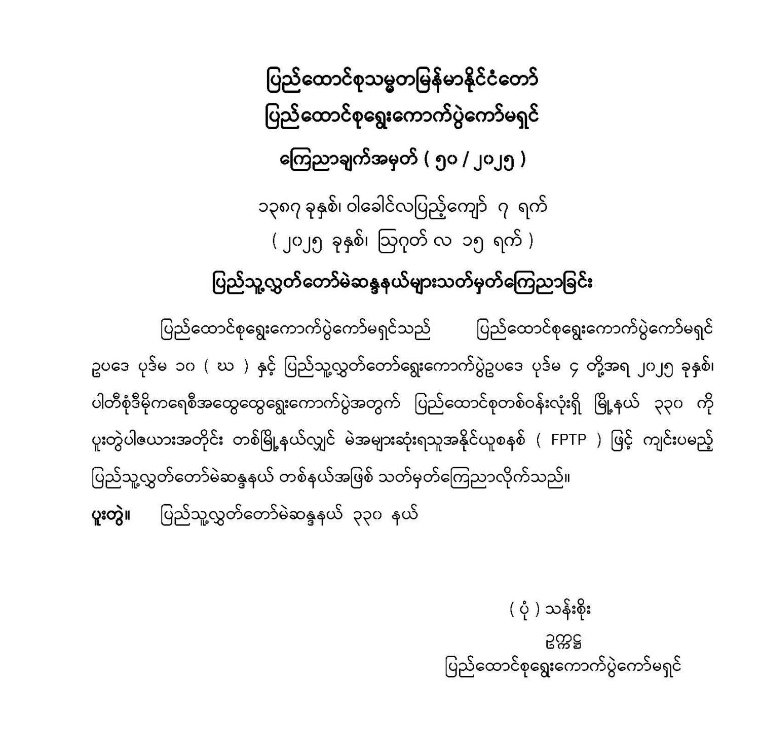 ပြည်သူ့လွှတ်တော်မဲဆန္ဒနယ်များ သတ်မှတ်ကြေညာခြင်း