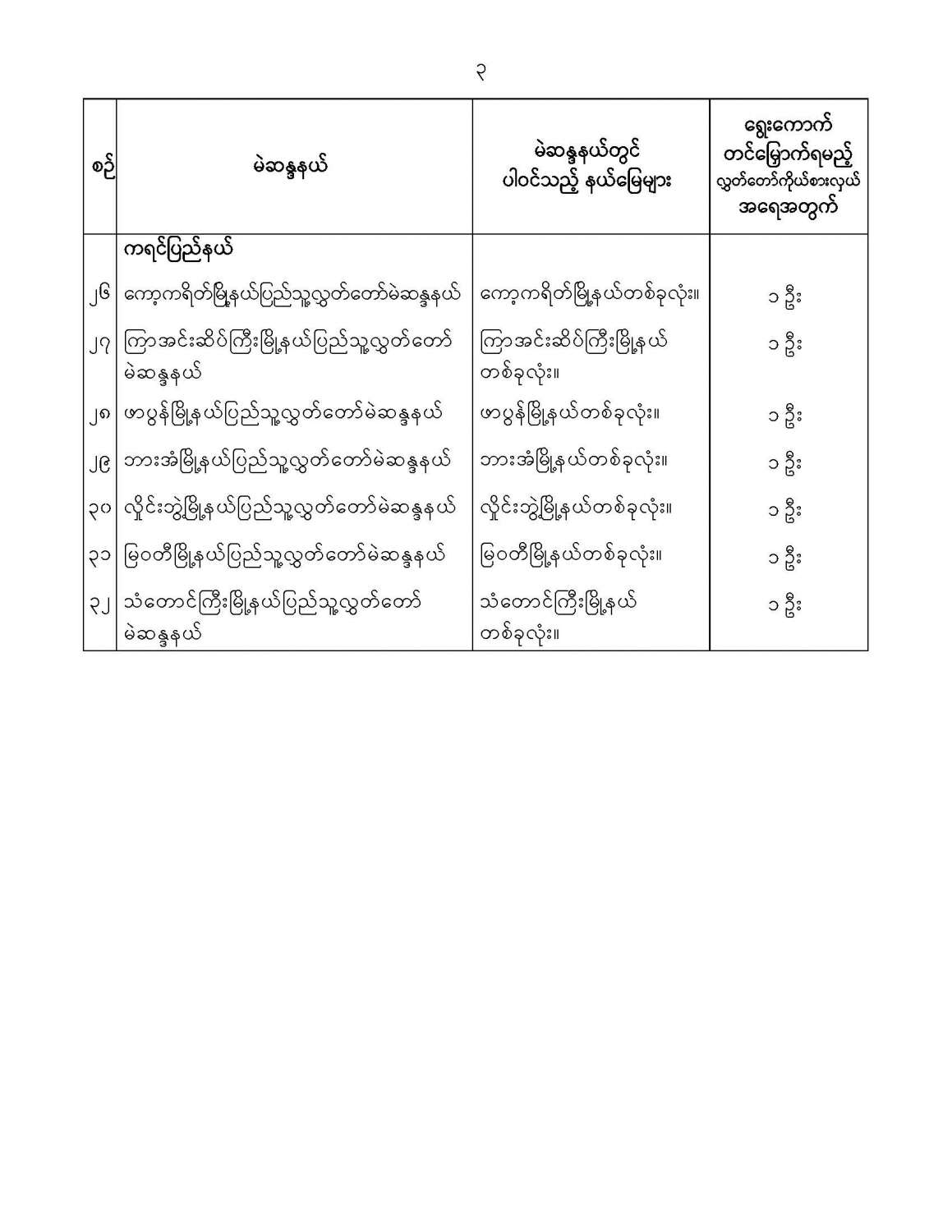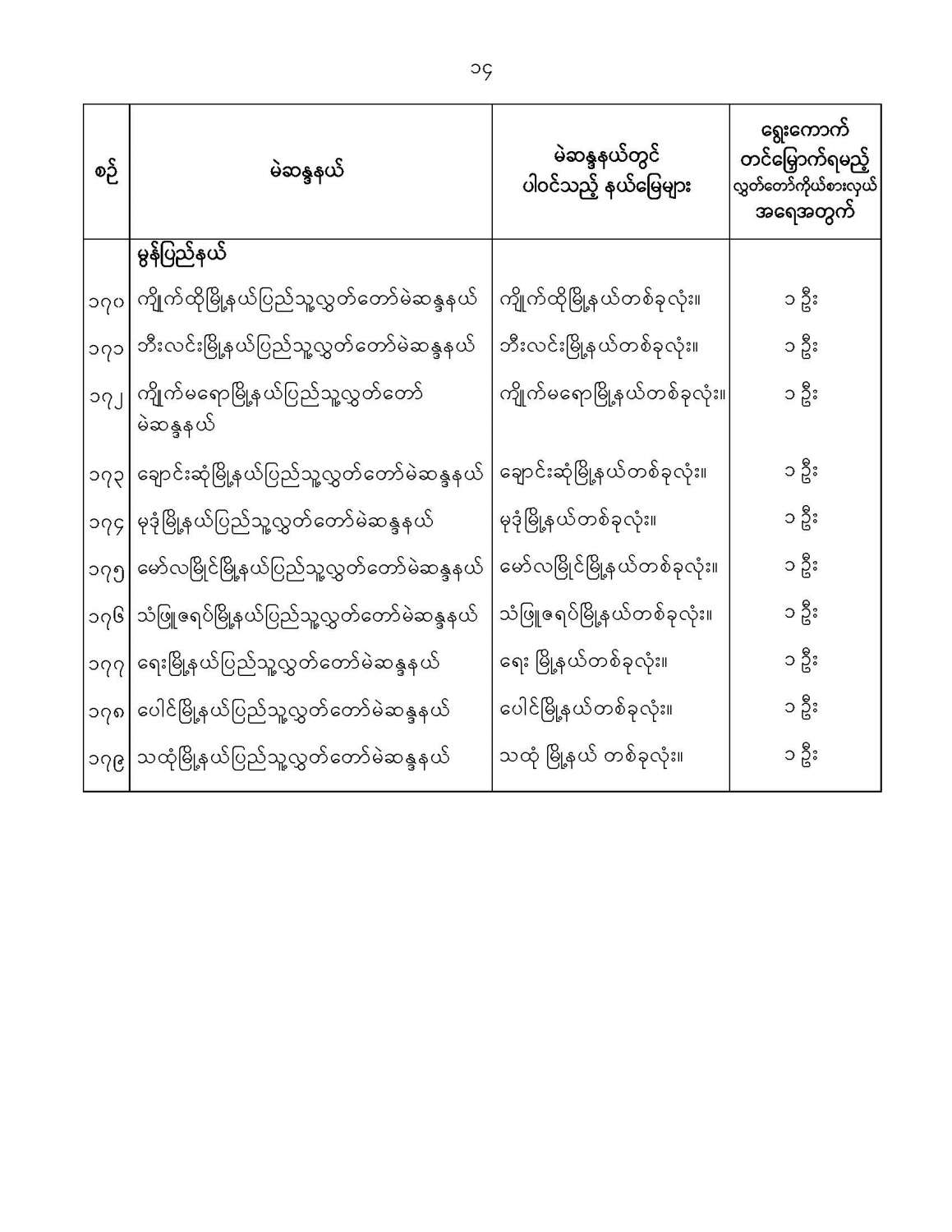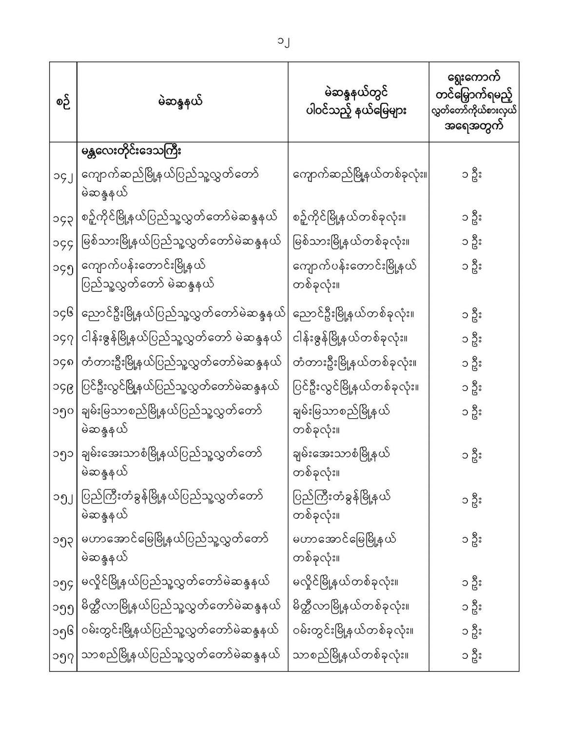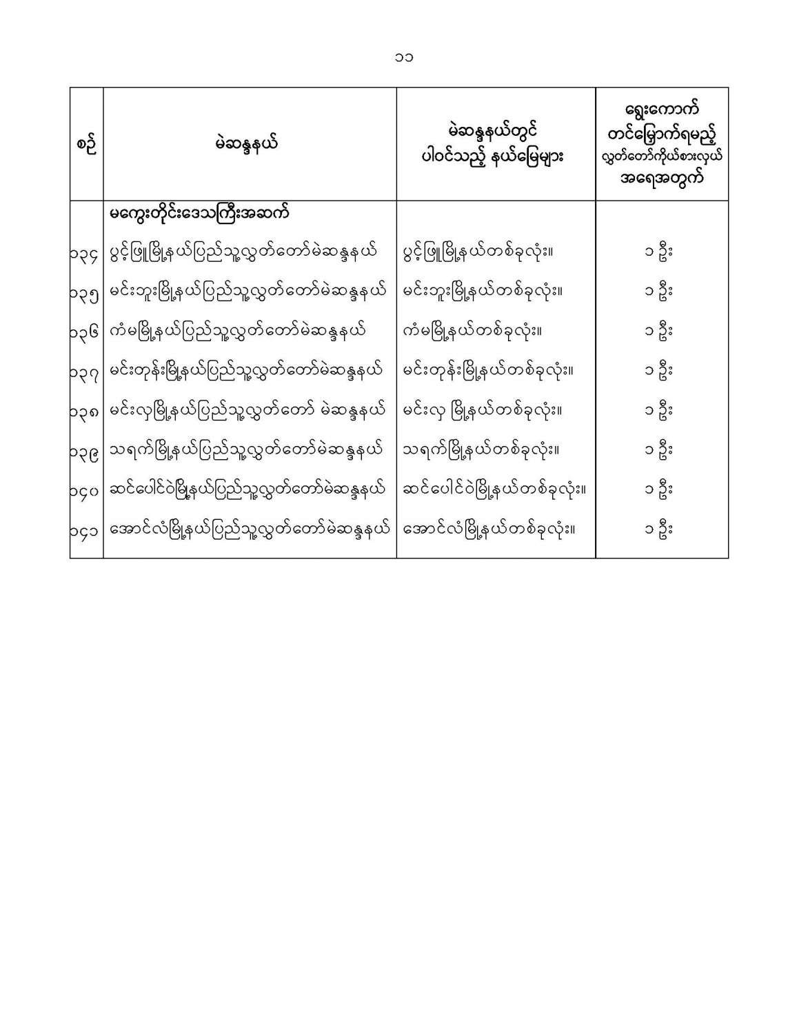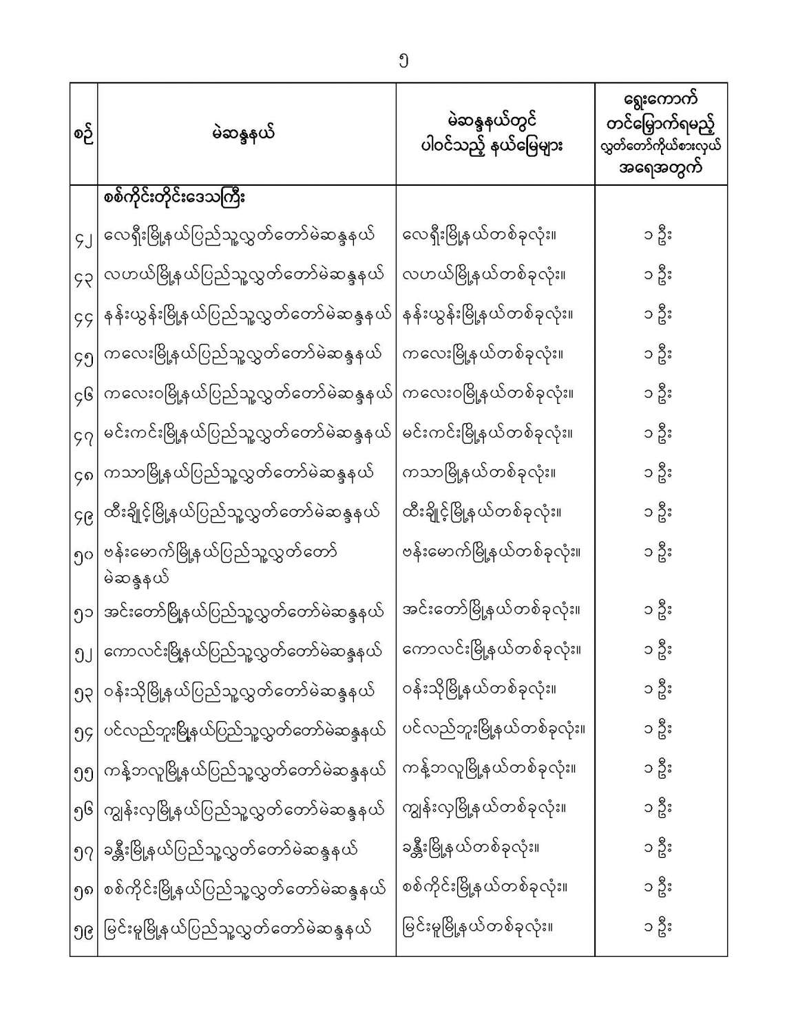ဝန်ကြီးဌာန ကြေညာချက်များ