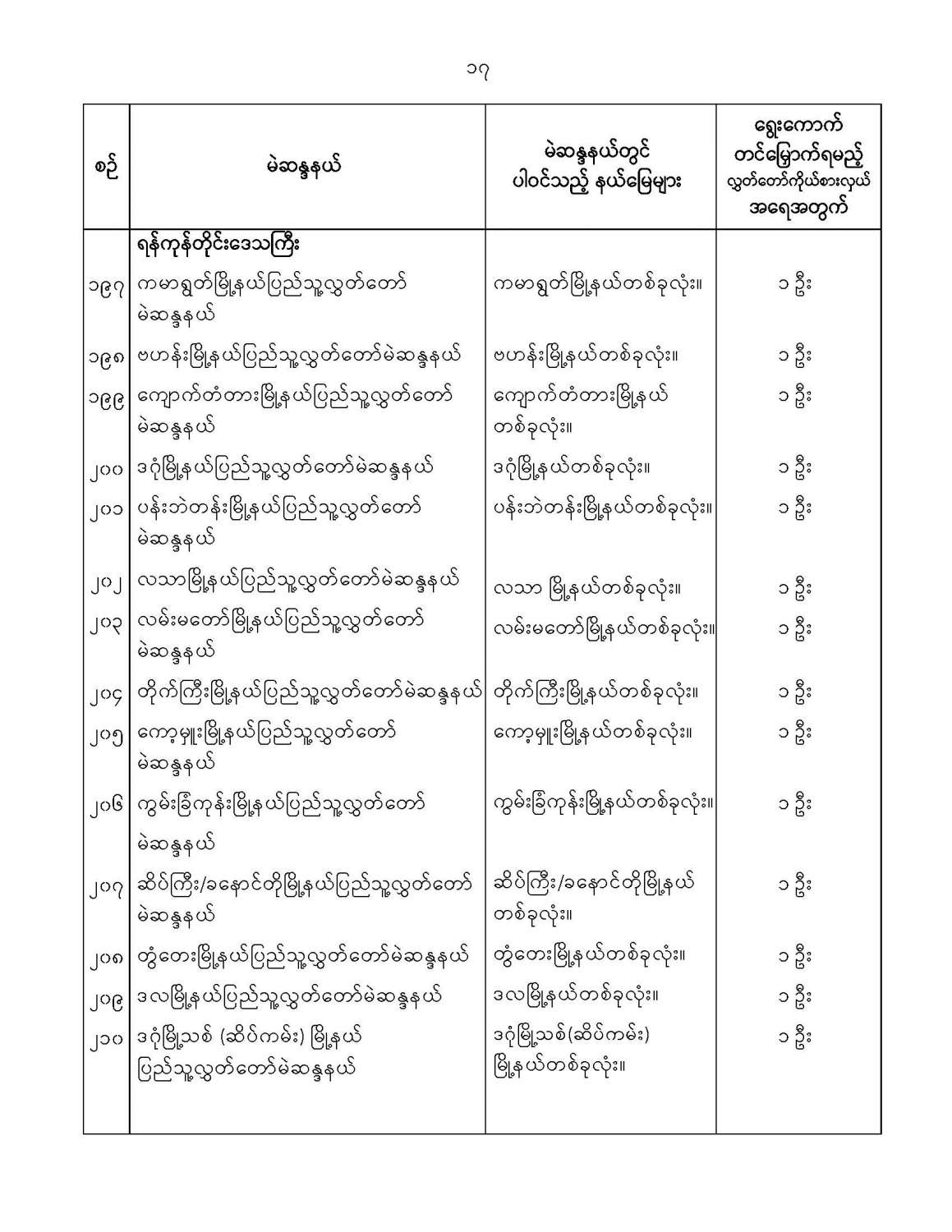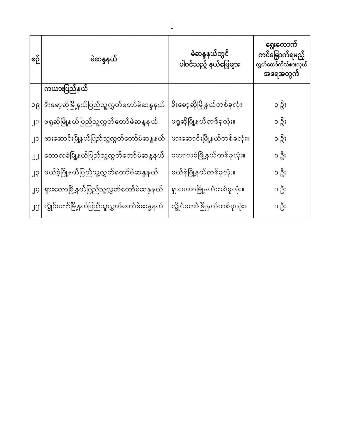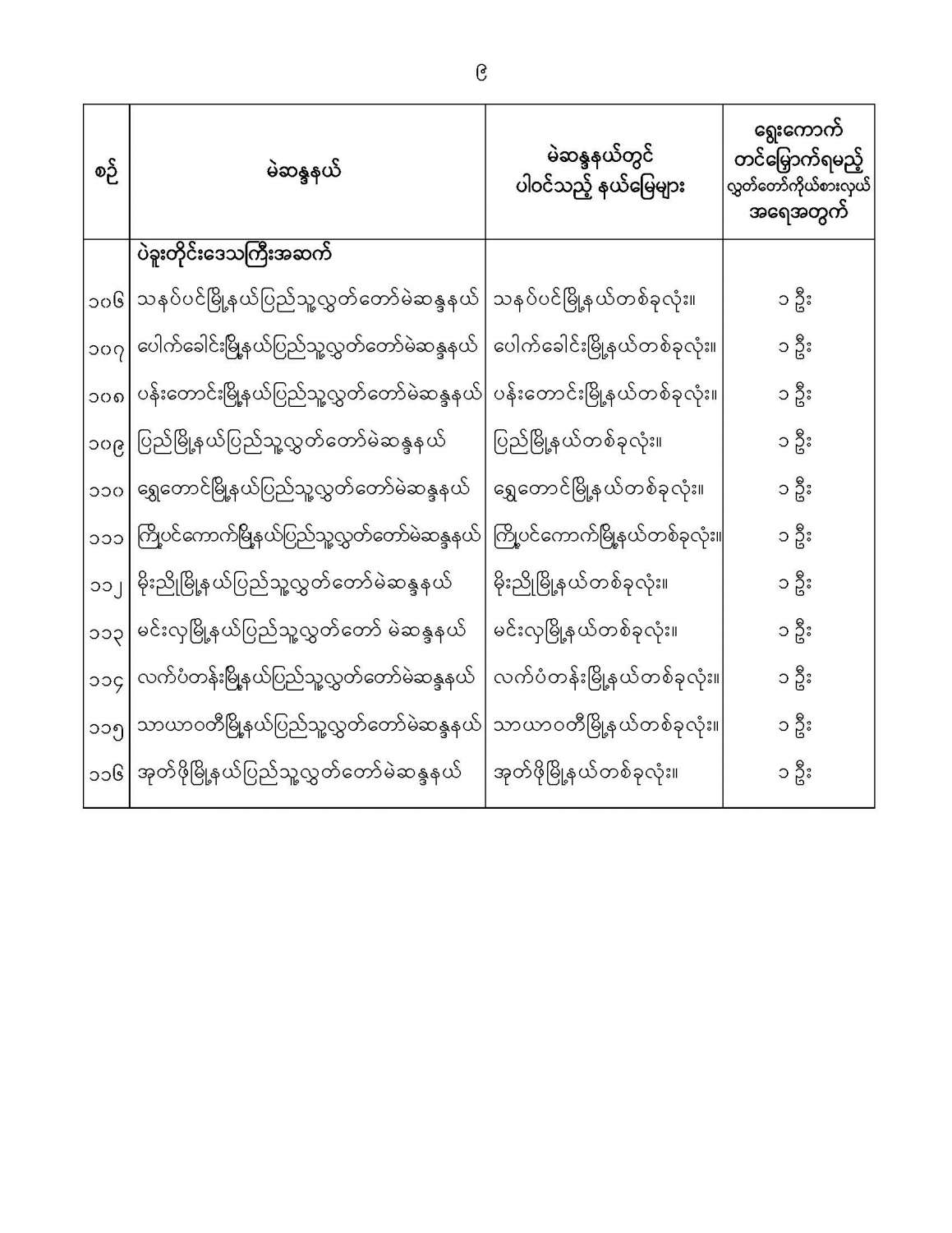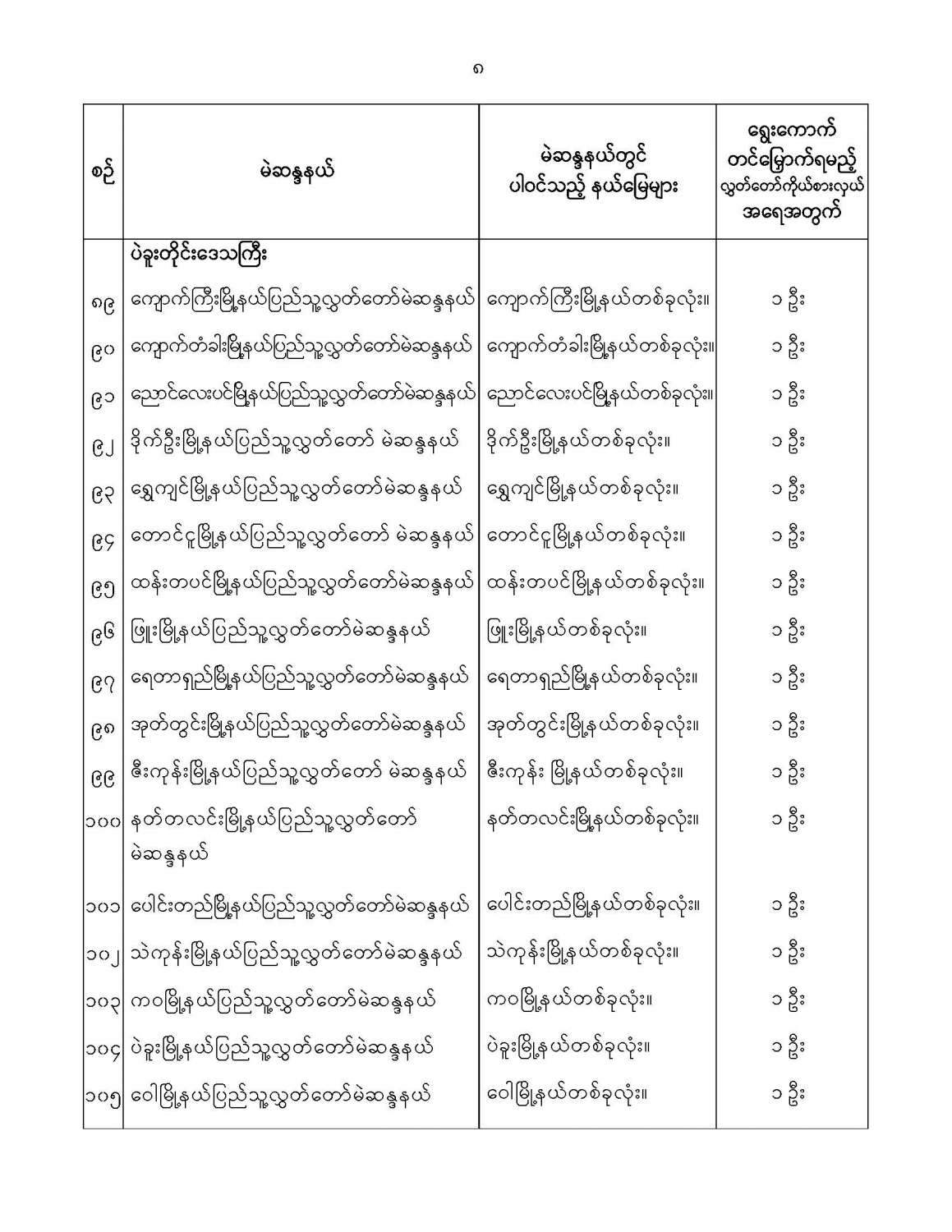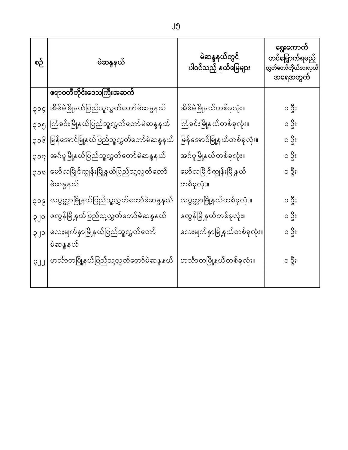 ဝန်ကြီးဌာန ကြေညာချက်များ