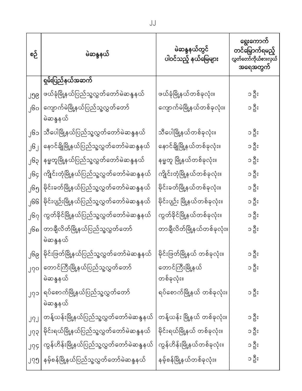 ပြဌာန်းပြီးဥပဒေများ