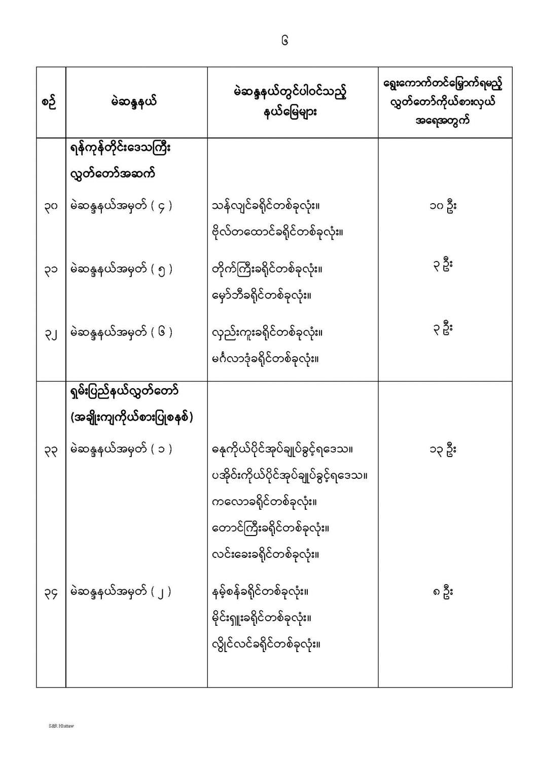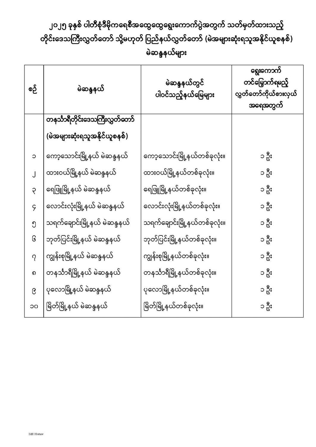 တိုင်းဒေသကြီးလွှတ်တော် သို့မဟုတ် ပြည်နယ်လွှတ်တော် မဲဆန္ဒနယ်များ သတ်မှတ်ကြေညာခြင်း