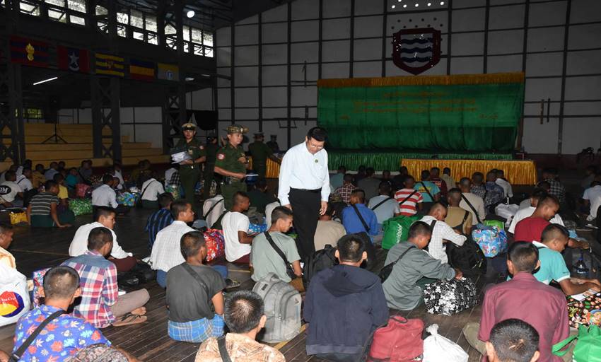 ဧရာဝတီတိုင်းဒေသကြီးအတွင်းမှ ပြည်သူ့စစ်မှုထမ်းသင်တန်း အမှတ်စဉ် (၁၆) သို့ တက်ရောက်မည့် နိုင်ငံ့သားကောင်းရတနာများအား ဧရာဝတီတိုင်းဒေသကြီးဝန်ကြီးချုပ် ဦးတင်မောင်ဝင်းနှင့် အနောက်တောင်တိုင်းစစ်ဌာနချုပ်မှ တာဝန်ရှိသူများက ပုသိမ်တပ်နယ်အားကစားခန်းမ၌ သွားရောက်တွေ့ဆုံသည်။