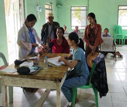 ထိုသို့ ဆောင်ရွက်ပေးလျက်ရှိရာ ယနေ့တွင် ပြည်သူ့ဆေးရုံကြီး၌ ပြင်ပလူနာ စုစုပေါင်း ၃၉ ဦးတို့ကို ငှက်ဖျားရောဂါ၊ တုပ်ကွေးရောဂါ၊ အထွေထွေရောဂါတို့နှင့်ပတ်သက်၍ လိုအပ်သည့် ကျန်းမာရေးစစ်ဆေးကုသပေးခြင်းများ ဆောင်ရွက်ပေးခြင်း၊ ဒေသခံတိုင်းရင်းသားပြည်သူ ၁၄ ဦးကို သွေးအမျိုးအစားစစ်ဆေးပေးခြင်းနှင့် ဒေသခံတိုင်းရင်းသားပြည်သူ ၅ ဦးကို ငှက်ဖျားရောဂါပိုး စစ်ဆေးပေးခြင်းများ ဆောင်ရွက်ပေးသည်။ ထို့ပြင် အတွင်းလူနာအဖြစ် တက်ရောက်ဆေးကုသမှုခံယူလျက်ရှိသူ ၃၂ ဦးတို့အား ဆေးအဖွဲ့များက လိုအပ်သည့် ကျန်းမာရေးစောင့်ရှောက်မှုလုပ်ငန်းများ ဆောင်ရွက်ပေးလျက်ရှိကြောင်း သတင်းရရှိသည်။