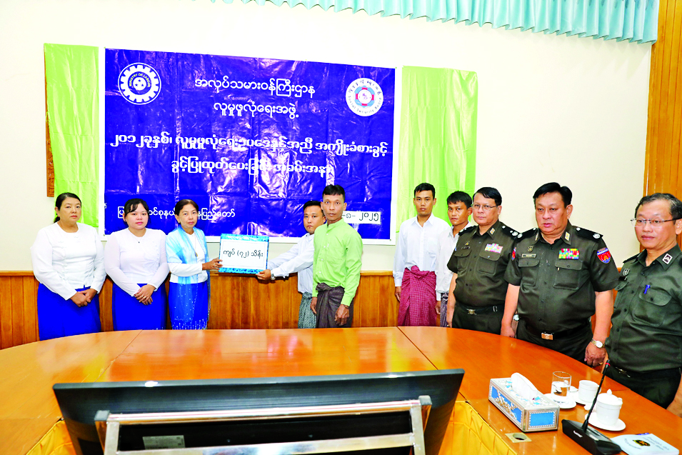 အလုပ်သမားဝန်ကြီးဌာန လူမှုဖူလုံရေးအဖွဲ့က ၂၀၁၂ ခုနှစ် လူမှုဖူလုံရေးဥပဒေနှင့်အညီ အလုပ်တွင် ထိခိုက်သေဆုံးမှုနှင့်ဆိုင်သည့် ငွေကြေးအကျိုးခံစားခွင့် ခွင့်ပြုထုတ်ပေးခြင်းအခမ်းအနားကို ယနေ့နံနက်ပိုင်းတွင် လူဝင်မှုကြီးကြပ်ရေးနှင့်ပြည်သူ့အင်အားဝန်ကြီးဌာန၌ ကျင်းပသည်။