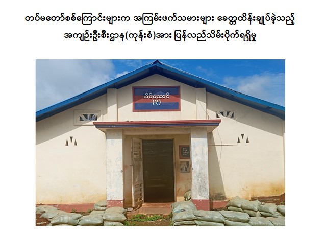 ထို့အတူ နောင်ချို-ကျောက်မဲလမ်းပိုင်းရှိ နယ်မြေရှင်းလင်းရေးလုပ်ငန်းများ ဆောင်ရွက်နေသော တပ်မတော်စစ်ကြောင်းများအနေဖြင့် အဆိုပါဒေသအတွင်း နယ်မြေစိုးမိုးရေးနှင့် နယ်မြေလုံခြုံရေးလုပ်ငန်းများ ဆက်လက်ဆောင်ရွက်လျက်ရှိကြောင်း သိရှိရသည်။